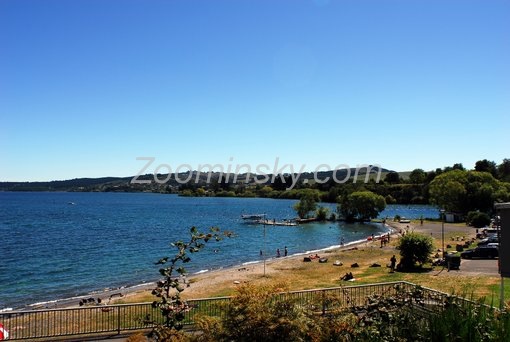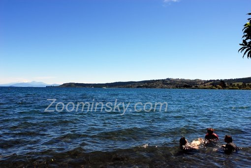 예전에 본 타우포의 하늘보다 오늘이 더욱 예뻤다. 오클랜드로 이주하는 짠이를 환영해주는 것 같아 한껏 기분이 업되는 순간. 멀리보이는 커다란 산 정상에는 만년설이 보여 한여름인데도 호수의 물빛과 함께 시원한 느낌을 준다. 타우포 호수 주변에는 여관들도 많으므로 뉴질랜드를 여행하시는 분들에게는 꼭 추천하고 싶은 장소.