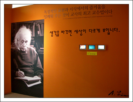 일단 전시회는 그저 그랬습니다. 아이에겐 너무 어렵다는 생각이 들더군요. 물론 아인슈타인 박사님의 이론이란 것이 성인도 좀체 이해하기 힘든 것이긴 하지만요.. ^^ 그래도 볼만했던 것은 사실 박사님의 이론에 대한 구구절절한 이야기나 설명보다도 박사의 친필 노트 그리고 작지만 박사의 뇌조각(?)이었던 것 같습니다. 그것을 보면서 오히려 느낌은 감흥이 더 컸던 것 같네요..