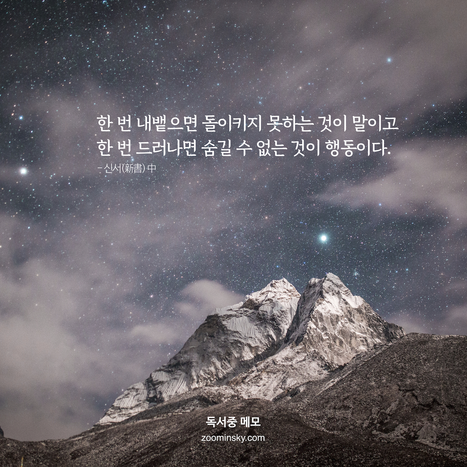다른 말로 하면 <언행>이라고 한다. 보통은 언행일치를 많이 이야기 하지만, 그것이 그리 쉽지 않다. 말은 쉽지만, 행으로 옮겨지는 것은 좀처럼 쉬운 것이 아니다. 그래서 신서에 등장하는 이 말씀을 중하게 여겨지지 않을 수 없다. 말처럼 수습이 불가능한 것이 어디 있고, 행동에서 내 마음이 그대로 읽히는 것이 어디 있겠는가?