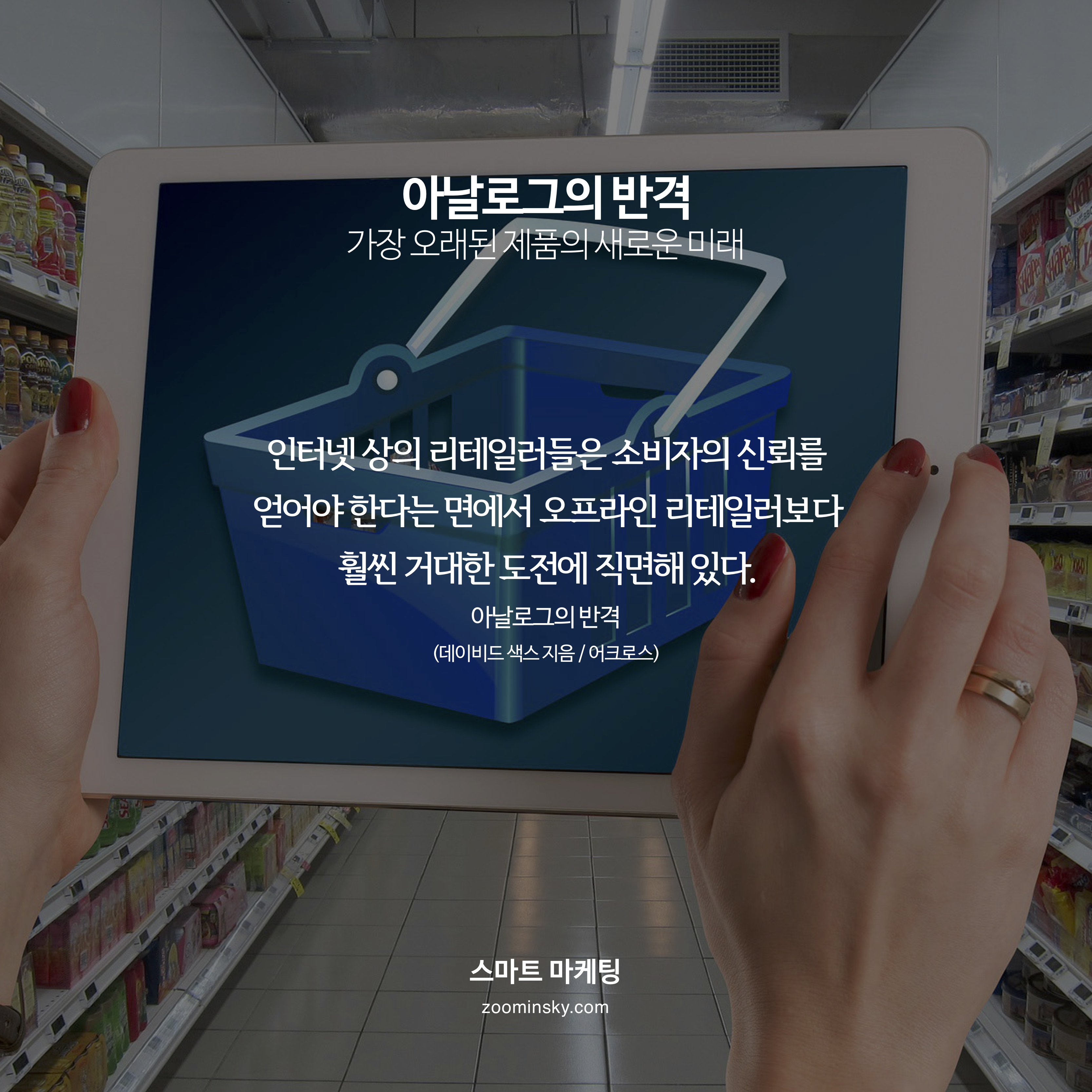 신뢰를 바라보는 정도는 사람에 따라 다를 수 있습니다. 100% 순도의 신뢰를 강조하고 강요하는 경우도 있을 것이고, 적당히 현실과 타협하는 경우도 있겠지만, 중요한 것은 결정적인 일에서는 신뢰를 가장 우선시해야 한다는 것입니다. 물건을 선택할 때도 고객과의 신뢰나 약속에 얼마나 충실하고 있는지도 점검해보는 것이 좋습니다. 하자 있는 물건, 문제가 있는 물건은 저렴하고 눈에 보이지 않으면 이문을 많이 남길 수 있다는 유혹에 넘어가 몇 번 그렇게 팔아 실제로 이문을 남긴다고는 해도 그것은 영속적인 사업을 스스로 걷어 차는 것이 될 것입니다.