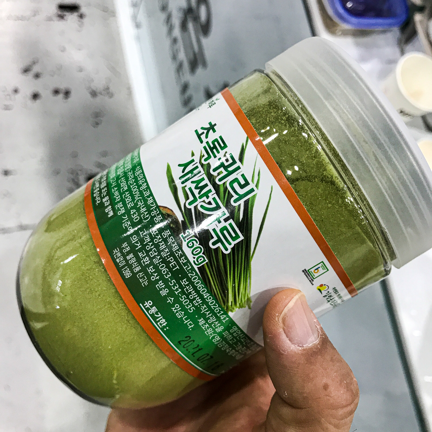 그 와중에도 내 감에 와 닿는 물건들은 있더군요. 최근 파우더 제품을 많이 보고 다니는 중인데 그런 종류의 파우더가 꽤 있었습니다. 거의 모든 것을 파우더 형태로 동결건조방식으로 만들어서 우유나 두유에 타 먹을 수 있도록 해놓은 제품들이 저는 관심이 갔었는데 새싹보리 제품들은 일단 현재는 물량이 힘들다고 하더군요.