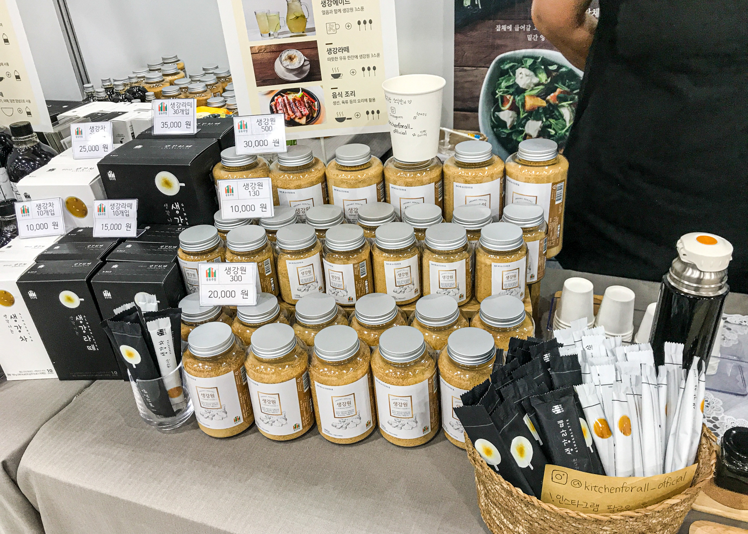 마지막으로 전시회를 나오기 전에 눈에 들어온 것은 생강차, 생강라떼 그리고 야채 간장이라는 것이었습니다. 보통은 생강청으로 액상타입인데 여기는 그것을 가루 형태로 구현을 했습니다. 즉, 청을 한번 더 가공한 제품이죠. 그렇게 해서 스틱형으로 뽑으니 아주 괜찮더군요. 맛도 좋았습니다. 그런데 개인적으로는 생강라테가 아주 맛있었습니다. 그리고 야채간장은 간장을 가공해서 맛간장으로 사용할 수 있게 만든 건데 간장 자체가 맛있더군요. 요것도 활용을 고민해보면 좋을 듯합니다.