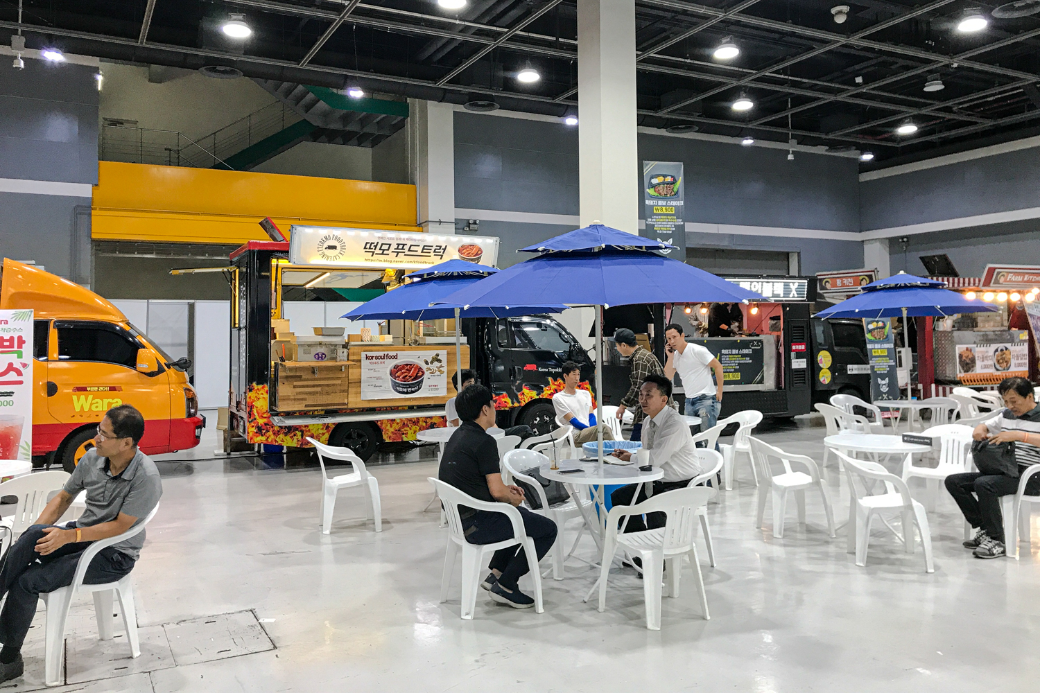 전체적으로 전시 규모가 그리 큰 편은 아닙니다. 1층과 2층을 모두 사용하지만 각 층별로 많은 업체가 들어와 있지 않아 오히려 돌아보는데는 편합니다. 복잡하지 않고 단순하다는 의미죠. 부스 구획 하기가 아주 쉬웠을 듯합니다. 입장객에게는 라테를 하나씩 줍니다. (공짜). 저는 사전 등록을 했기 때문에 무료로 관람을 했습니다. 푸드트럭이 요즘 전시회에는 기본이더군요. 다양하게 있었는데 딱히 먹고 싶은 게 없어서 이번에는 이용하지 않았습니다.