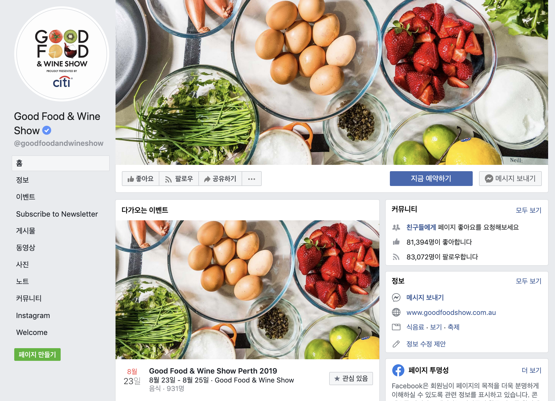 [굿푸드앤와인쇼 시드니 홈페이지]