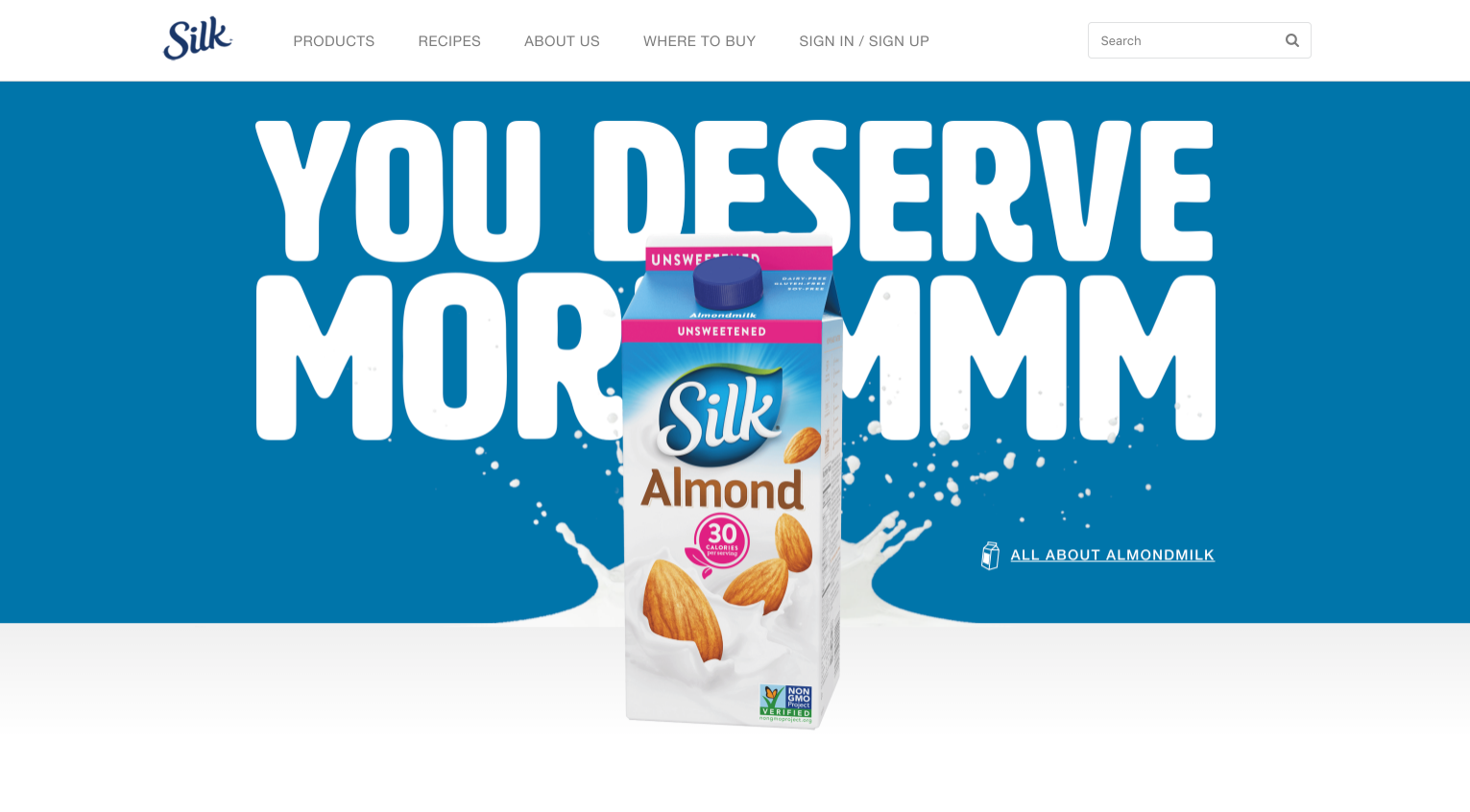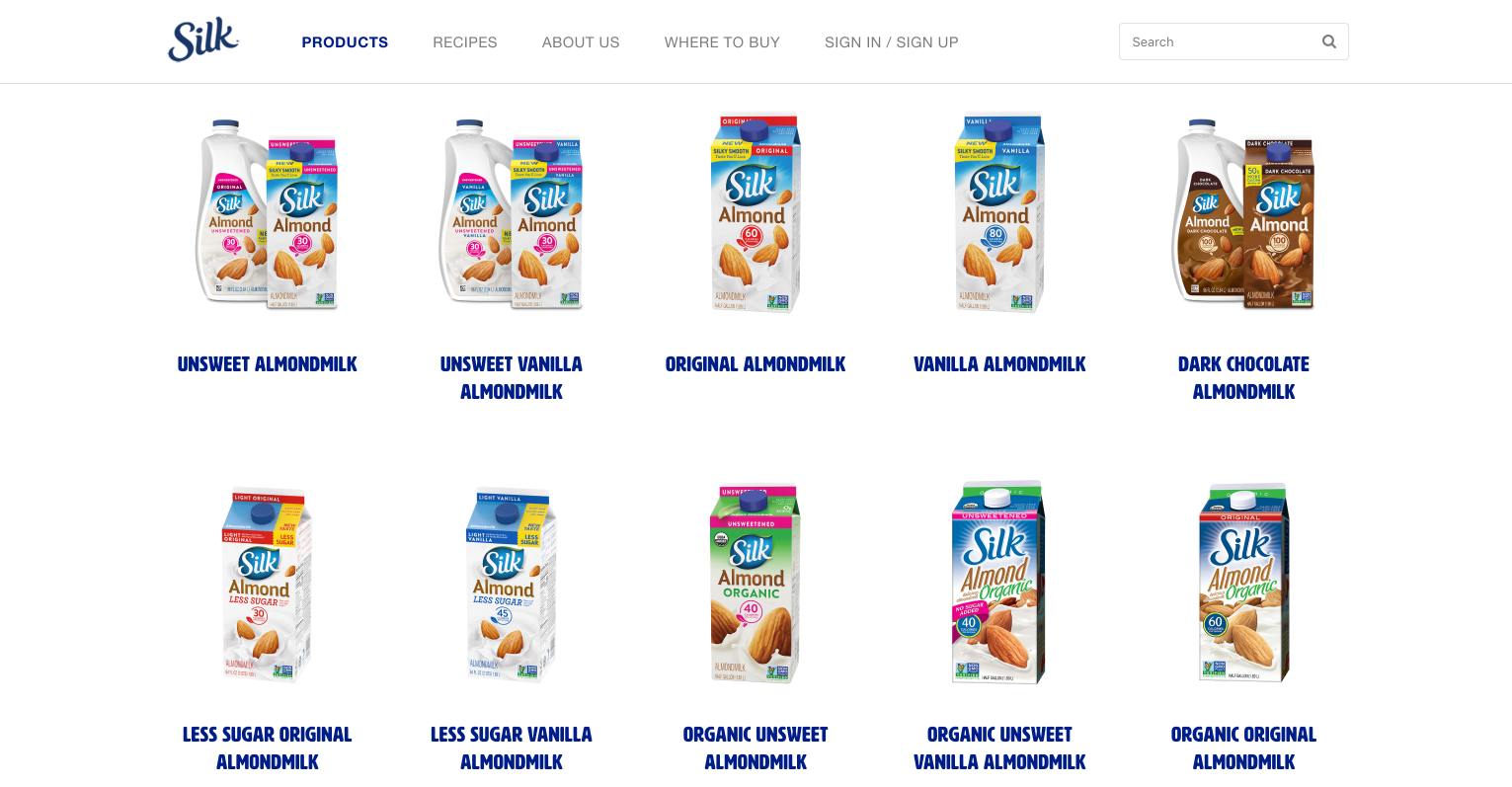 Find Silk's complete line of Almondmilk products, with a mildly nutty taste and a calorie count that isn't nutty at all, our almondmilk is perfectly poised to become your cereal’s new best friend. Plus it can be a smart swap for milk in recipes or shakes.