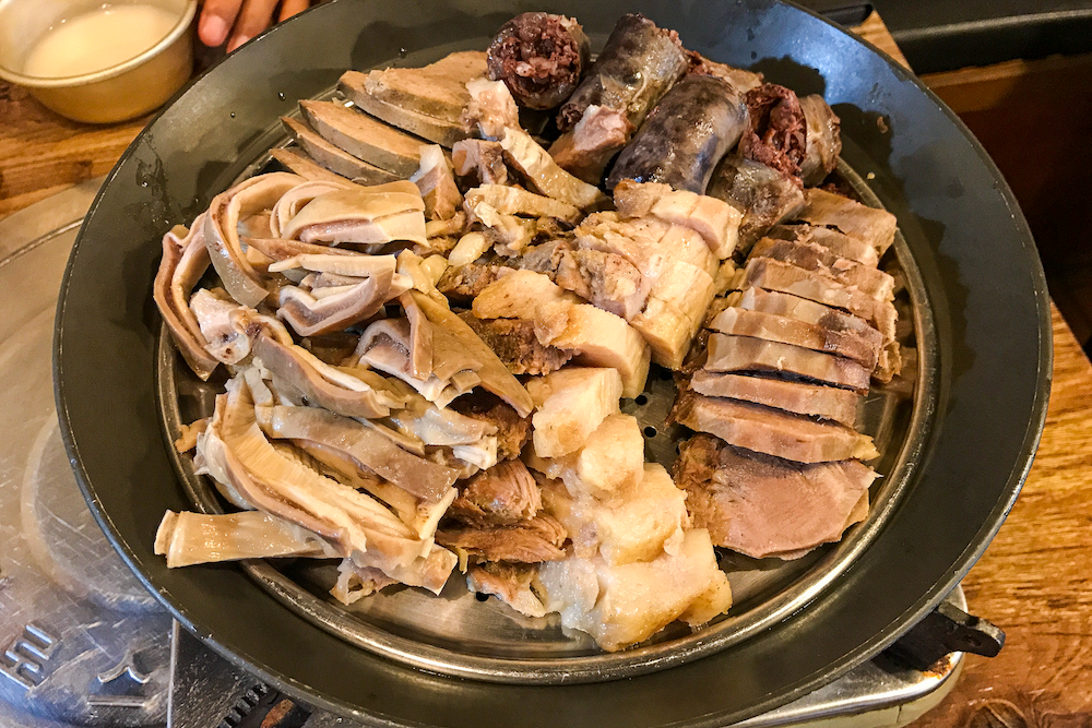 머릿고기와 순대 그리고 내장 등으로 구성되어 있다.