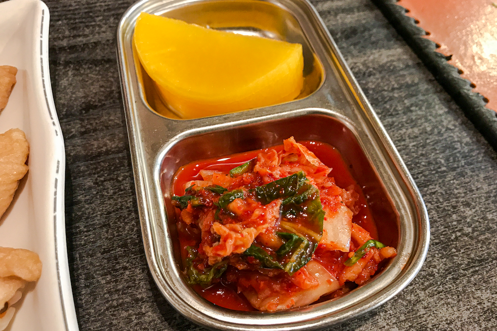 이집은 메뉴가 단촐한 편이다. 우동(기본, 유부, 오뎅,냉우동,새우튀김)과 메밀 소바(냉,온) 그리고 돈까스에 유부초밥과 회덮밥이 있다. 써놓고보니 단촐하지 않은 것 같지만 사실 다른 분식집에 비해서는 단촐하지 않은가 싶다. 반찬도 아주 간결하다. 특히 테이블과 전체적인 분위기는 레트로스럽다.