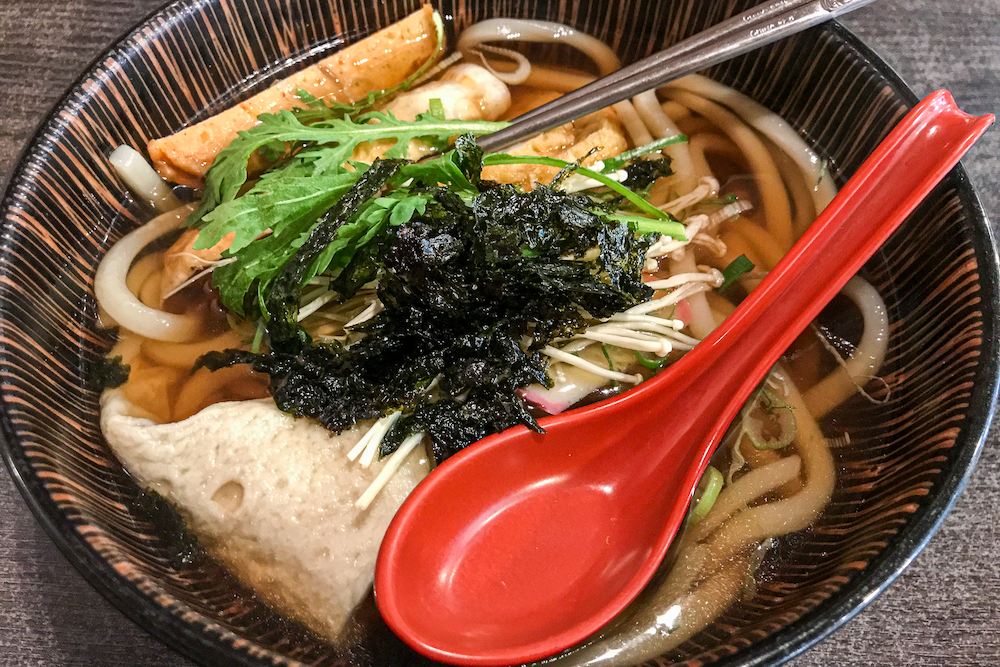 김치와 단무지가 전부다. 일단 아침과 점심 사이여서 우동과 유부초밥을 주문했다. 자리에 앉아 있는 사이 몇 개 안되던 테이블이 금새 꽉 찬다. 2층도 있어서 만석인 1층을 넘어 2층으로 올라가는 상황. 주로 들어오는 사람들은 어린 친구들부터 연세 있으신 할아버지들까지 다양한데 생각해보니 광화문 아닌가? 요즘 태극기 들고 나오시는 연세 있으신 분들이 워낙 많아 유동인구의 분포가 확 높아진 느낌이 강하다.