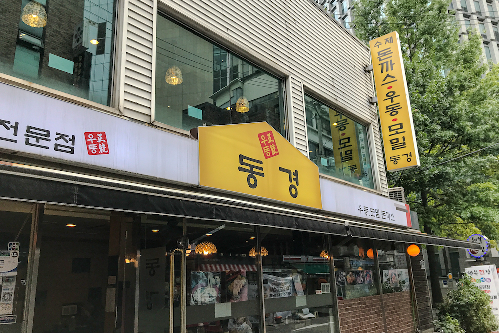 광화문은 먹는 장사의 최고 격전지라고 해도 과언이 아니다. 사대문 안이니 오죽하겠는가? 더구나 중요한 정부부처와 세종문화회관 그리고 각종 기업들 그리고 거기에 더불어 막대한 유동인구. 관광객의 필수 방문코스가 바로 광화문 아니겠는가? 그러다보니 여기서도 전통을 지키며 한자리를 자리한다는 것은 내공이 없이는 불가능하다. 반짝 유행만으로는 오래버티는 집이 거의 없다. 은근하지만 힘이 있어야 생존이 가능한 지역이다. 그런 곳에서 발견한 동경이라는 식당이 참 흥미롭다. 꽤 오랜 시간 한 자리를 버텨왔다. 간판에는 우동, 메밀, 돈가쓰라고 적혀 있으니 구태여 뭐가 전공인지는 밝히지 않아도 되리라.