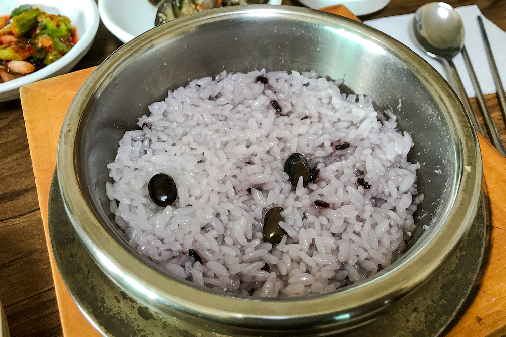 그러고 보니 이걸 돌솥이라고 할 수 없고 작은 압력솥 같은 것에 밥을 해주는데 맛나다. 예전에 골프장 앞에 있는 오대산 산채비빔밥 집과 비슷. 거기도 이런 밥솥이 나래비를 서서 밥하는 장관을 보여준 적이 있는데 희한하게 여기에 밥을 하니 맛나다. 이것과 반찬만으로도 아주 맛나게 한 끼를 해결했다.