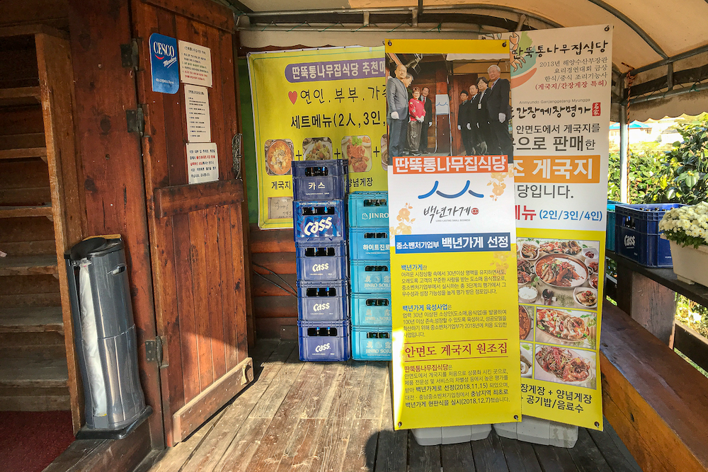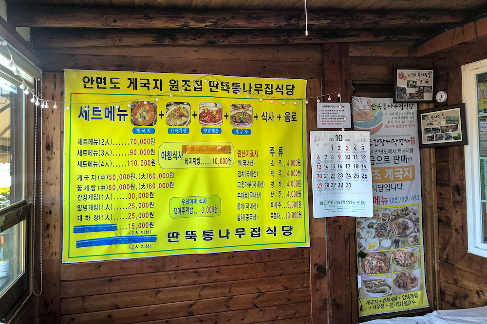 하지만, 게국지 집은 많지만 제대로 맛난 집이 별로 없다. 게국지는 게장이 기본적으로 맛나야 한다. 게장이 별거냐하겠지만, 그거 참 맛난 집도 고르고 골라야 한다. 소개받아 찾아낸 안면도 게국지 원조라는 딴뚝통나무집식당이라는 곳을 방문했다. 게국지 백반을 시키면 간장 게장, 양념 게장 그리고 새우장을 기본으로 반찬으로 깔리고 거기에 게국지 찌개가 등장한다. 와.. 정말 천국이 따로 없다. 밥 두 공기는 뚝딱이다.