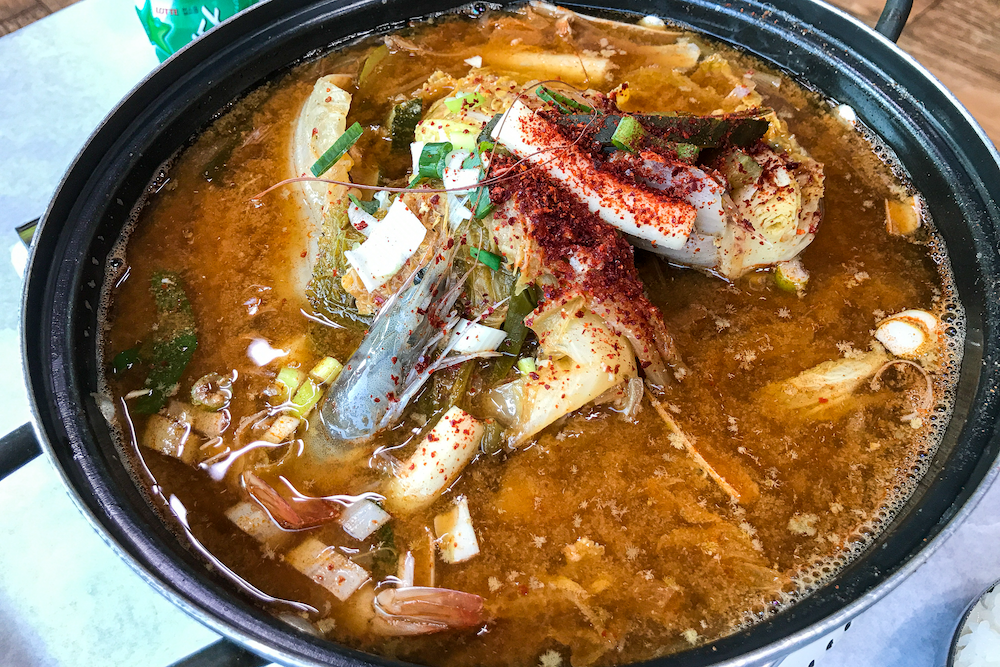 게찌개와 배추 된장국의 중간 정도라고나 할까?