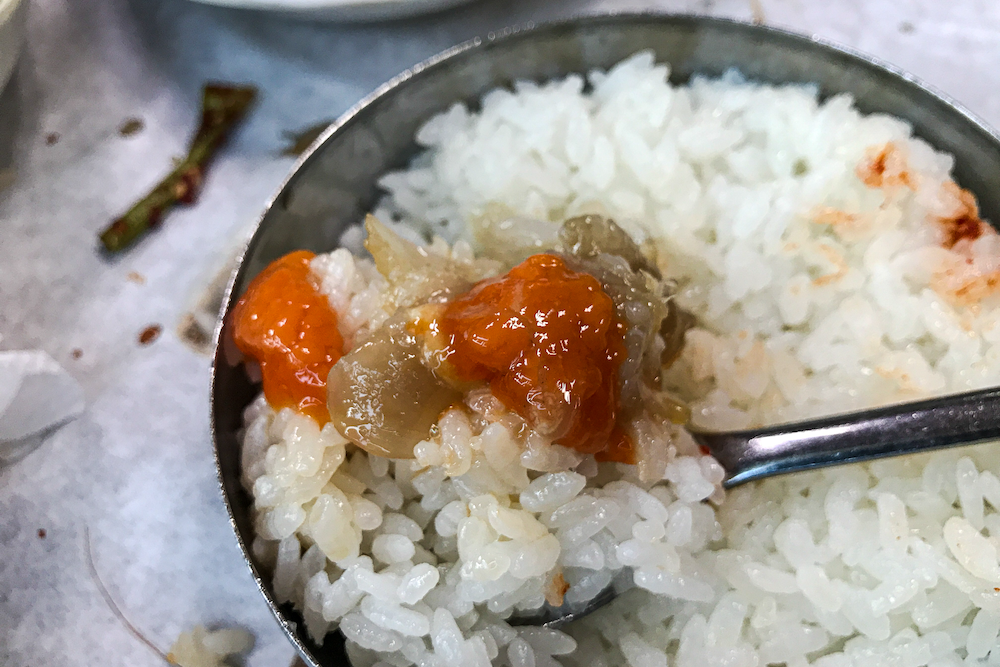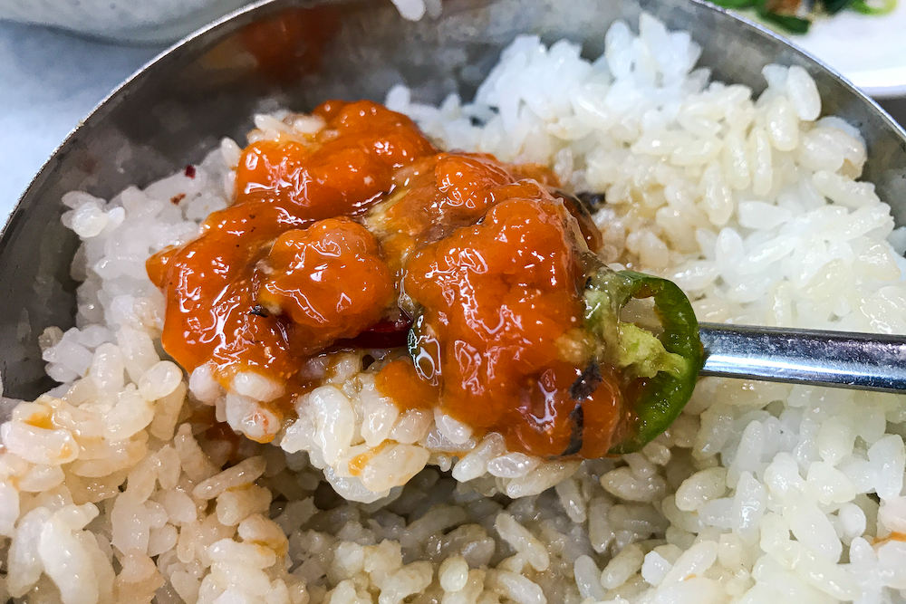 양념 게장은 솔직히 쏘쏘. 양념 맛이 강하지 않았는데, 간장도 심심한 느낌이다. 어딘가는 간장 게장이 너무 짜서 먹고 나서 물이 엄청 먹히는 경우가 있는데 여기는 그런 것이 없다. 먹을때도 부담이 없고, 먹고 나서도 부담이 없다.