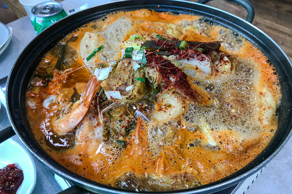 게국지라는 충청도 서산지역의 지역 향토음식이 있다. 나도 게장을 좋아하기에 놀랐지만 게국지라는 음식이 있는지를 몰랐었다. 지인의 소개로 게국지의 세계를 영접하는 순간. 새로운 신세계가 열렸다. 게국지는 게장 국물(게국) 혹은 주변 바다에서 나오는 해산물의 국물 혹은 젓갈(갯국)을 넣어 만드는 김치라는 뜻인데 최근에는 이런 김치를 넣고 약간의 해산물을 더 넣어 끓여내는 찌개가 게국지로 통한다. 안면도에 가면 최근에는 온통 게국지 전문점이 활개를 치고 있다.