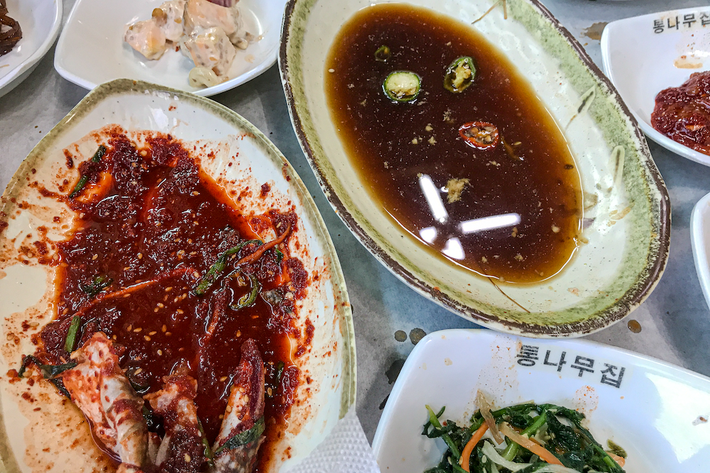 새우장도 맛났는데 앞에서 말했던 간장의 비법 때문인 것으로 보인다. 고스란히 요거 하나면 밥 반공기가 사라진다. 거의 배가 터질만큼 흡입을 하고 나니 정신이 조금 든다. 그리고 상을 내려다보니 ㅋㅋ 잔해가 장난 아니다.