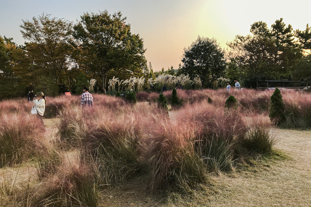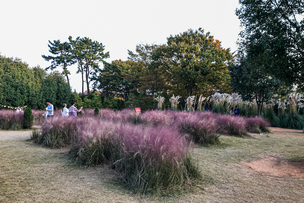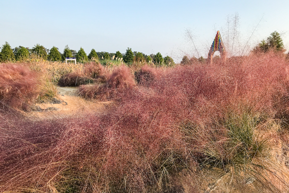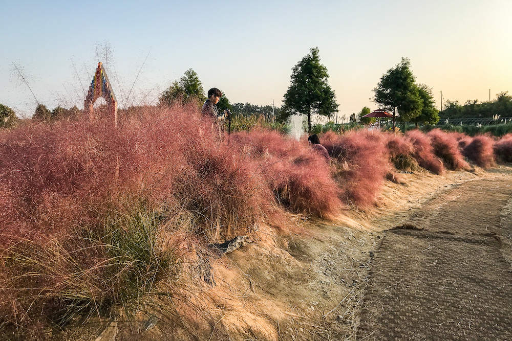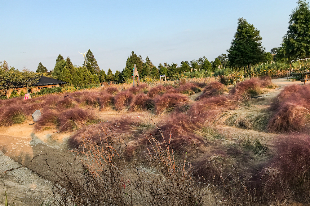 이렇게 조성된 핑크뮬리 그룹이 약 두세 군데 정도 된다. 위 사진은 매표소에서 진입해 연꽃동산을 지나 만나게 되는 첫 번째 핑크뮬리 정원이다. 원래는 이곳이 연원이었는데 최근에 핑크뮬리 정원으로 바뀐 듯.