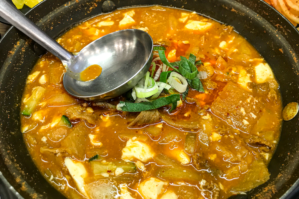 요것이 돼지찌개이다. 김치찌개와는 조금 다른 느낌으로 돼지를 훨씬 더 많이 넣고 채소류로 토핑을 한 것이 김치찌개와는 다른 느낌을 준다. 매운맛은 2단계를 먹었는데 전혀 맵지 않으니 3단계 정도 추천한다.