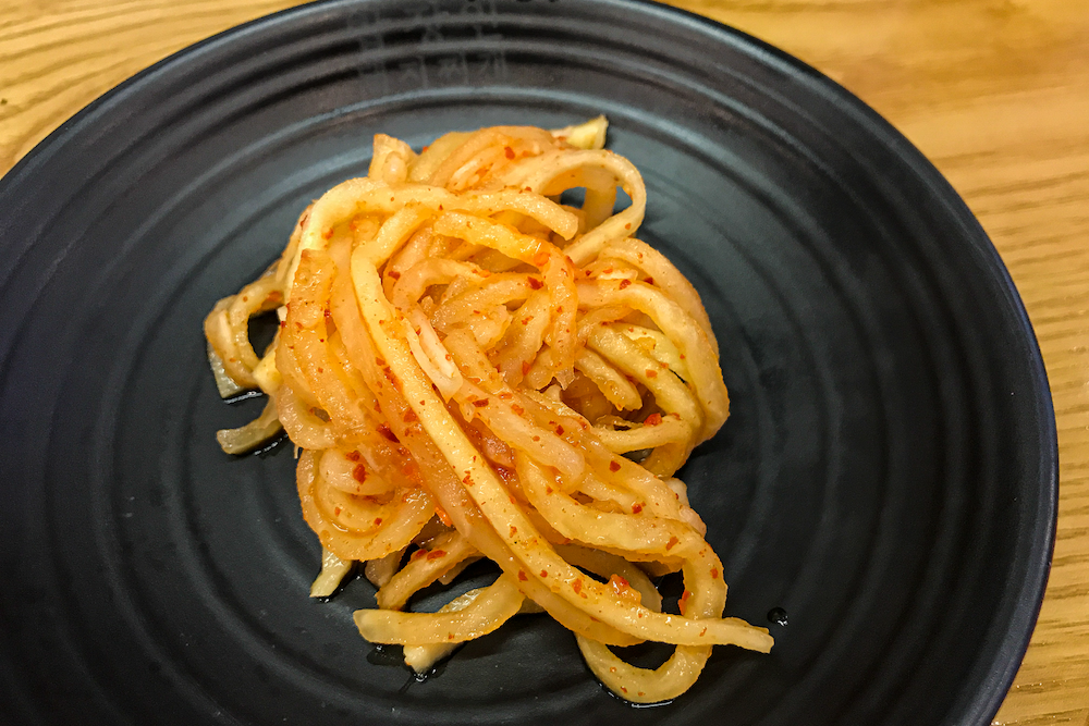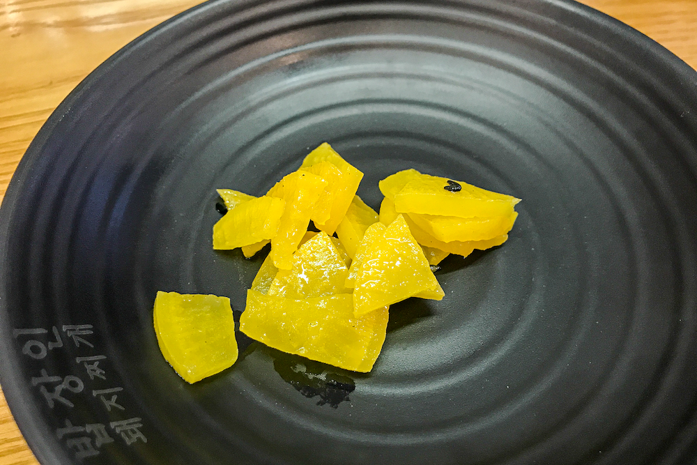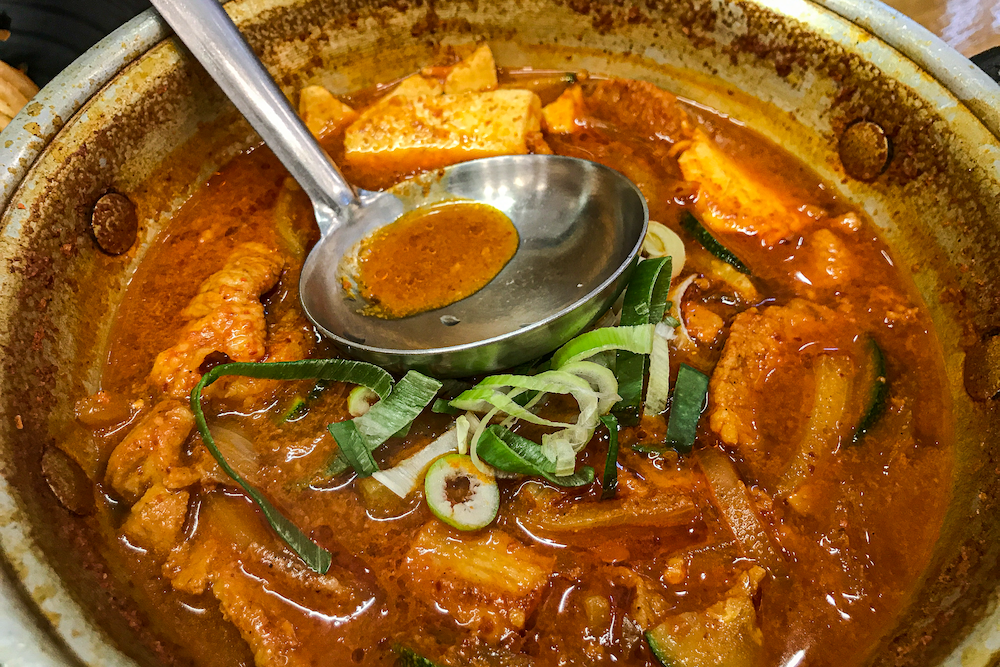 요것이 돼지찌개이다. 김치찌개와는 조금 다른 느낌으로 돼지를 훨씬 더 많이 넣고 채소류로 토핑을 한 것이 김치찌개와는 다른 느낌을 준다. 매운맛은 2단계를 먹었는데 전혀 맵지 않으니 3단계 정도 추천한다.