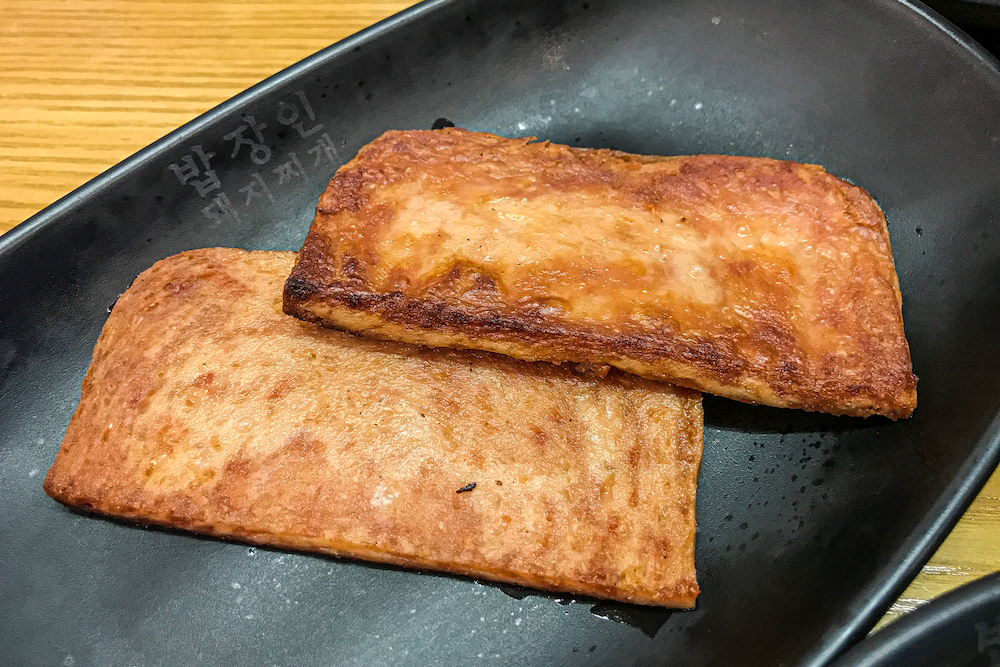 밥장인돼지찌개의 독특한 점은 매운맛의 단계를 조절하는 것이 가능하다고 한다. 이때 겁이 나서 2단계를 먹었더니 ㅜㅜ 매운 거 못 드셔도 3단계는 가능할 듯하다. 밥장인 돼지찌개와 계란 후라이가 같이 나오는 세트를 주문하고 스팸을 사이드 메뉴로 추가했다.