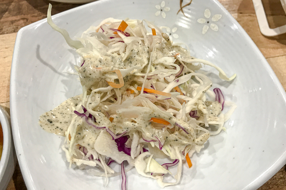 어차피 조개전골은 반찬 맛으로 먹는 건 아니므로 나오는 반찬에 젓가락이 자주 가지는 않는다. 단, 서비스 메뉴로 주는 오징어 튀김과 군만두가 생각보다 먹을만했다. 두 사람이 가면 조금 많은 양이 아닌가 싶다.
