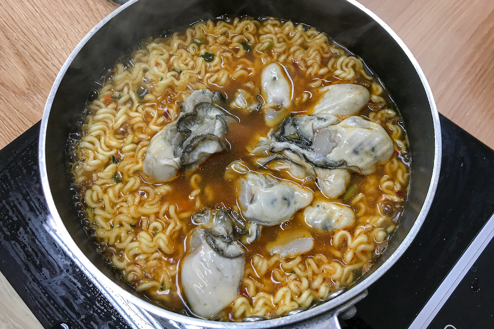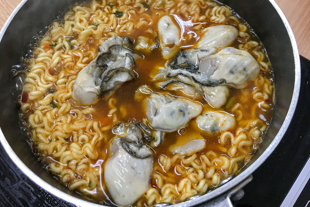 개인적으로 겨울이 오면 꼭 끓여 먹는 것이 바로 굴라면이다. 진라면(매운맛)에 신선한 굴을 한 봉지 넣고 보글보글 끓여 먹으면 그것만큼 맛난게 없다. 물론 강호동만큼 라면을 한 번에 세 개씩 먹지는 못하지만 한 개로도 충분히 입이 즐겁고 마음이 즐겁다. 굴은 바다에서 나는 우유라고 할 정도로 완전한 수산 식품이다. 겨울 내내 부족할만한 체력에 도움이 되고 나트륨이 많은 라면을 먹으면서 그나마 위안이 된다.