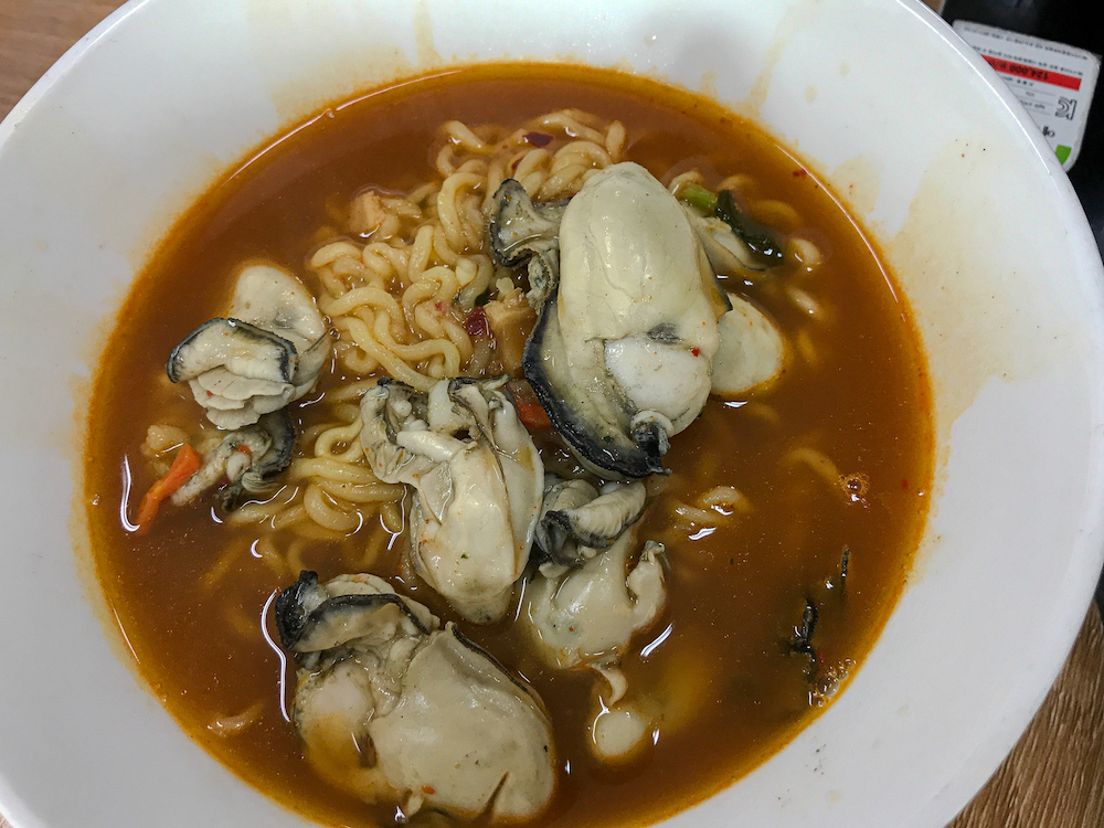 개인적으로 겨울이 오면 꼭 끓여 먹는 것이 바로 굴라면이다. 진라면(매운맛)에 신선한 굴을 한 봉지 넣고 보글보글 끓여 먹으면 그것만큼 맛난게 없다. 물론 강호동만큼 라면을 한 번에 세 개씩 먹지는 못하지만 한 개로도 충분히 입이 즐겁고 마음이 즐겁다. 굴은 바다에서 나는 우유라고 할 정도로 완전한 수산 식품이다. 겨울 내내 부족할만한 체력에 도움이 되고 나트륨이 많은 라면을 먹으면서 그나마 위안이 된다.