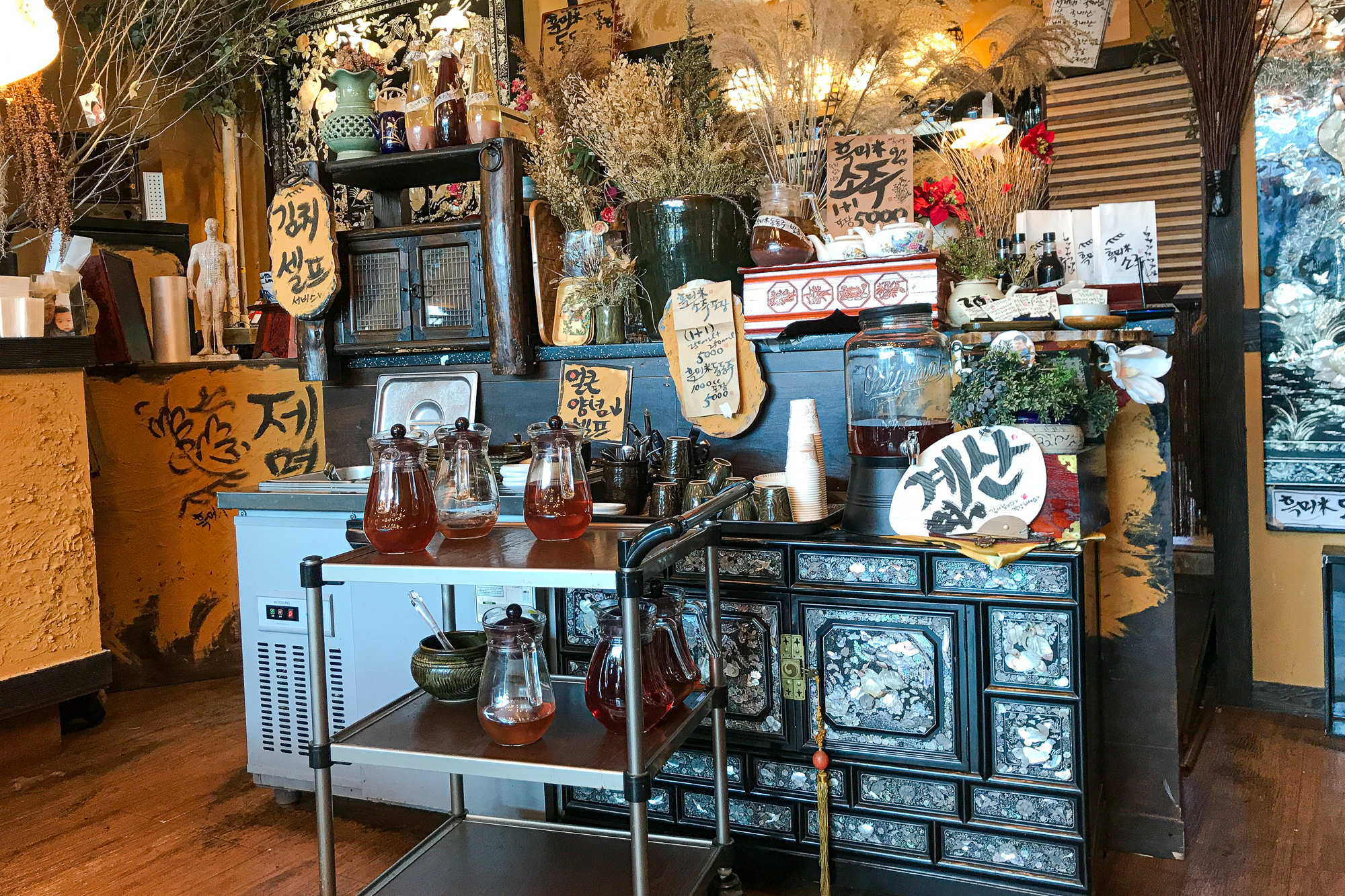 막상 들어가보니 분위기는 더 요상하다. 올드한 가구에 휘갈려쓴 듯한 글씨. 그리고 알 수 없는 메뉴의 조합. 흑미소주와 흑미동동주가 있다. 아쉽게도 이날은 미팅을 앞두고 있어서 술을 먹지는 못했지만 무척 궁금했다. 다음에는 꼭 흑미소주와 흑미동동주에 보쌈 한쌈 해야할 것 같다.
