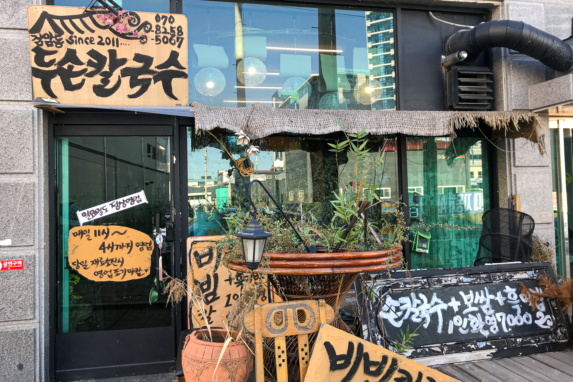 인천 검안동에 업무차 방문했다. 점심을 못먹어 늦게 식당을 찾는데 공장지대라 그런지 식당이 몰려 있지는 않고 드문드문 보인다. 검색을 하는데도 잘 나오지 않는다. 그러다가 지나가는 길에서 만난 두손칼국수 간판. 무언가 굉장히 색달랐다. 작은 간판에 손칼국수 + 보쌈 + 흑미밥이 무려 7천원. 무조건 들어가서 맛보기로 결정!