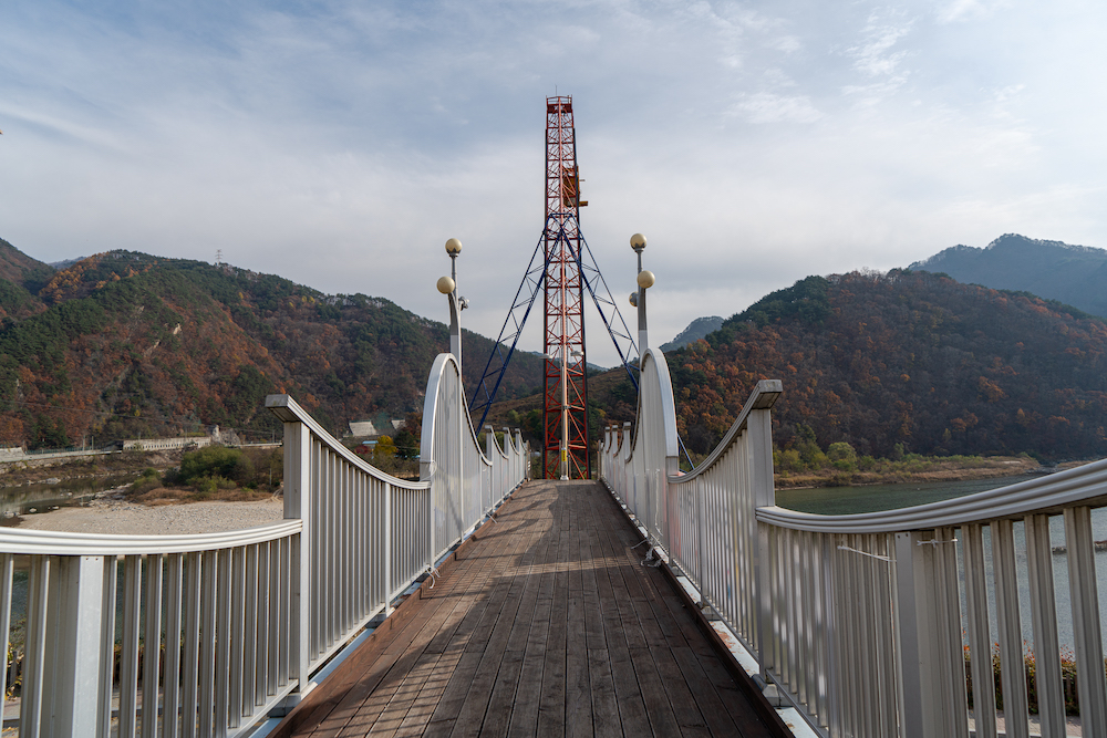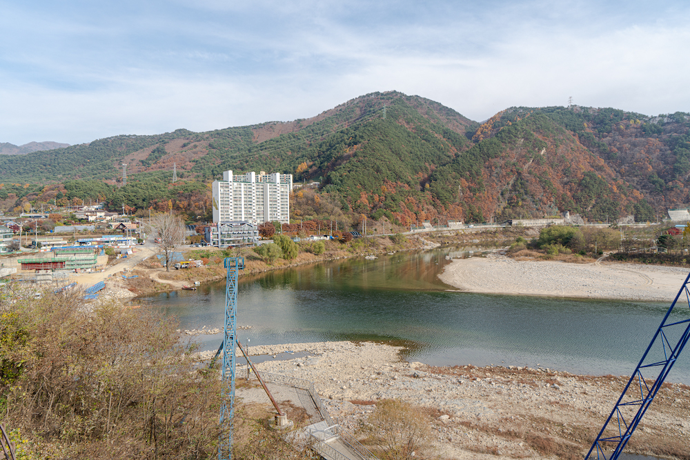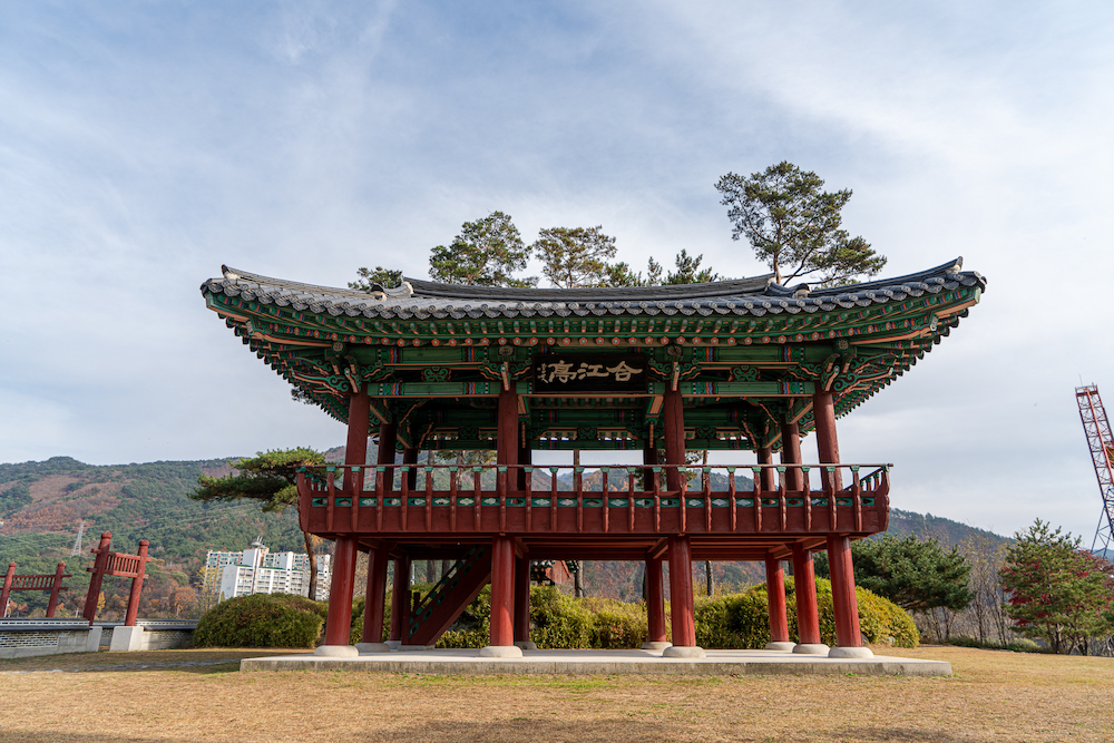 그런 인제를 갈 때는 어디 다른데 들려볼 여유가 없었는데 지난번에 우연히 합강정이라는 정자를 돌아보게 되었다. 합강정휴게소와 같이 붙어 있는데 평일에 가니 주차장도 한산하고 돌아보는 여유도 있어서 좋았다. 규모도 생각보다 아주 큰 정자였고 그 뒤에는 소양강으로 합쳐지는 인제 내린천과 인북천이 보인다. 거기에 번지점프대가 있는데 높이 22층 규모라고 하니 아찔하다.