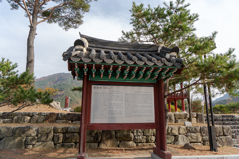 1676년(숙종2년)에 세워졌고 화재로 소실 누었다가 1756년(영조32년)에 중수했다고 한다. 물론 길이 새롭게 나면서 예전의 합강정은 사라지고 지금에 있는 것은 1998년에 복원한 것이라고 한다. 앞에 넓은 뜰이 있고 소나무가 아주 잘 생긴 것이 보기가 좋다.