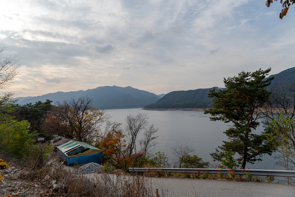 여유 있게 합강정 구경을 하고 국도를 따라오다 보니 길에 이어지는 소양호의 풍경이 아주 멋졌다. 이곳에서 신혼시절을 보내셨을 지금은 모두 돌아가신 부모님 생각이 난다. 저기 어디쯤에서 내가 지난 간 자리 어디쯤에서 시간의 인터벌을 두고 두 분도 스쳐가셨으리라. 그렇게 나도 인제8경의 하나라는 합강정을 소양호를 지나갔다.