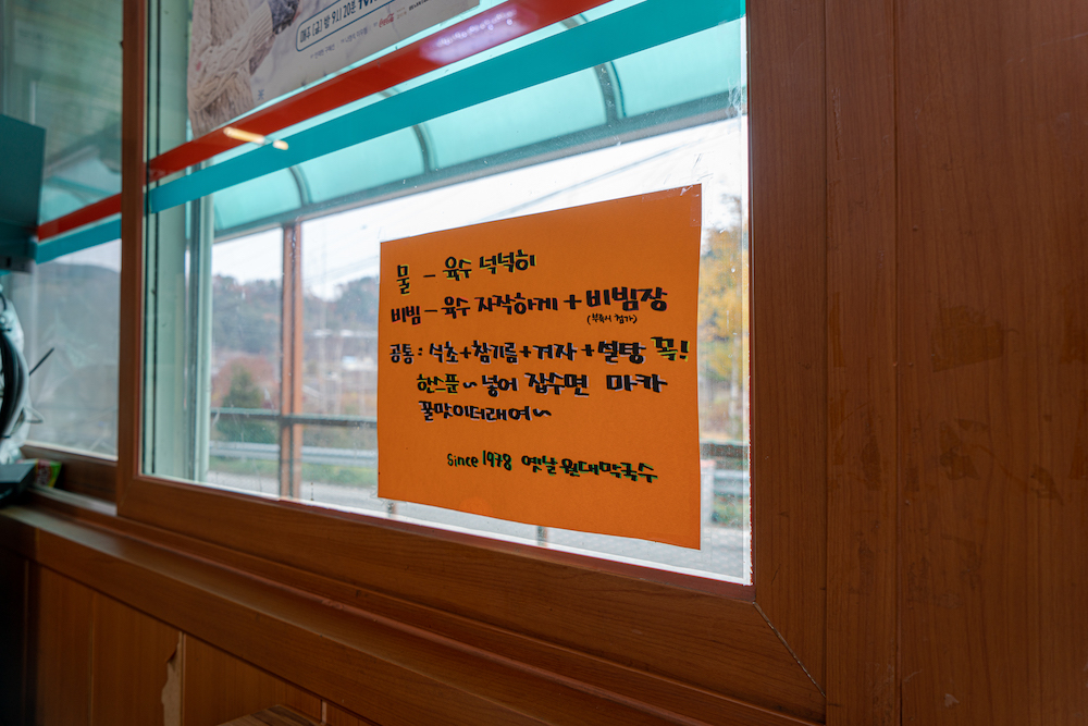 원대막국수는 먹는 법이 따로 있다. 창문마다 자리마다 붙여 놔서 눈에 잘 보인다. 그걸 그대로 따라먹기를 권장한다. 물론 이것도 개인 취향의 하나지만 말이다.