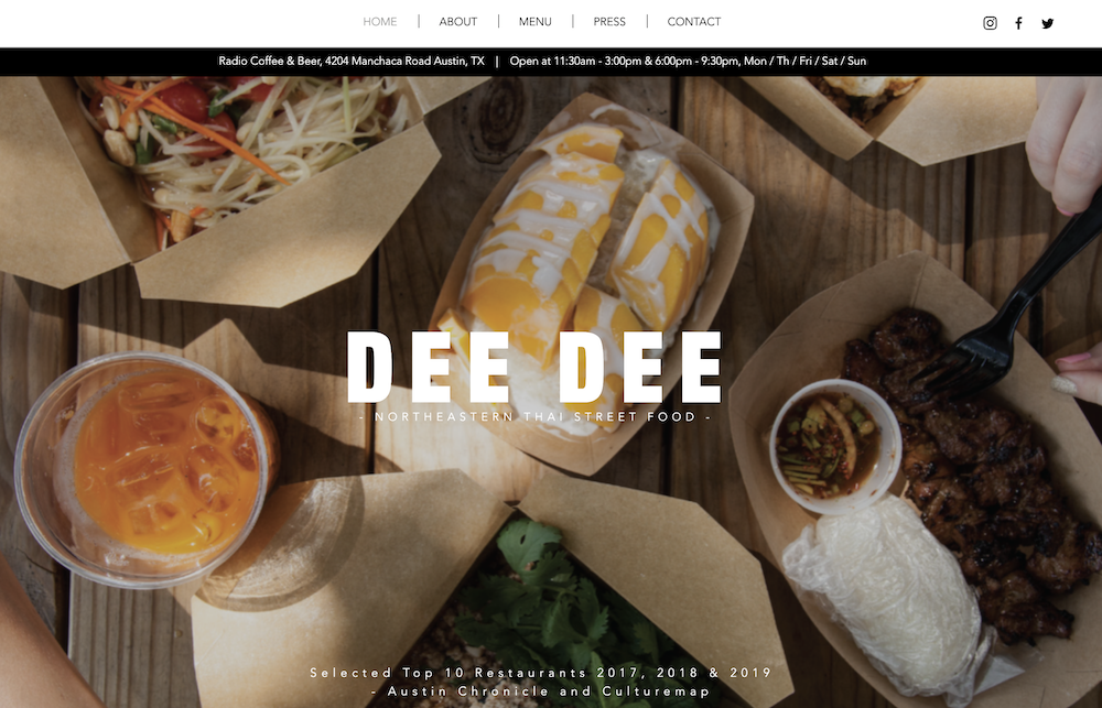 2016년 오픈한 디디는 태국 북동부 요리에서 많이 사용하는 칠리 페이스트, 피시 소스, 레몬 그라스, 라임, 바질 등을 활용해서 멋진 요리들을 만들고 있습니다. 주 메뉴는 팟 카프라오(11불 / Pad Kaprow : 돼지고기볶음밥), 솜땀(10불 / 파파야 샐러드), 가이 양(반마리-14불, 한마리-26불 / 숯불구이치킨) 등입니다. 망고찹쌀밥(7불)도 아주 맛이었보이네요. 텍사스 오스틴에 간다면 꼭 여기를 들려봐야겠습니다. 커리나 국수, 볶음밥 이런 것은 없으니 괜히 찾지는 마시고요.