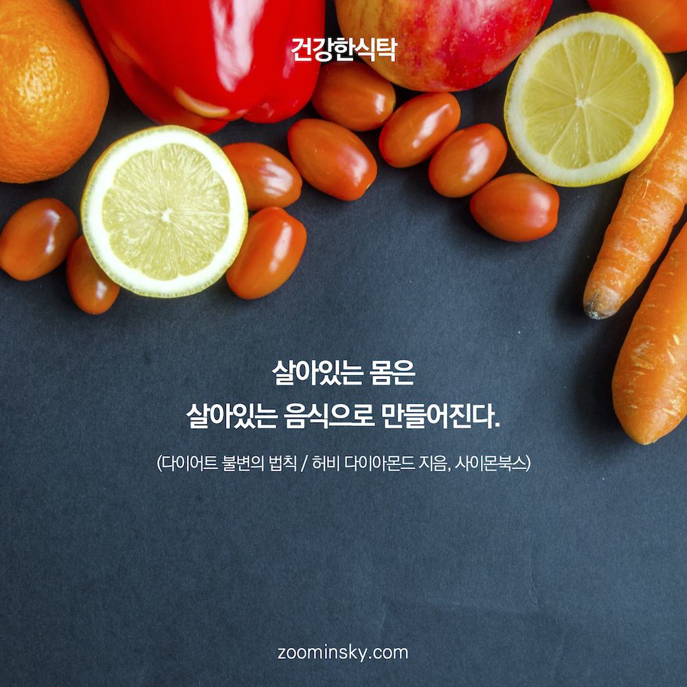 "살아있는 몸은 살아있는 음식으로 만들어진다. 살아있는 음식은 수분 함유량이 많은 음식이다. 수분이 많지 않다면 그 음식은 살아있는 것이 아니다. (허비 다이아몬드의 다이어트 불변의 법칙 중)"