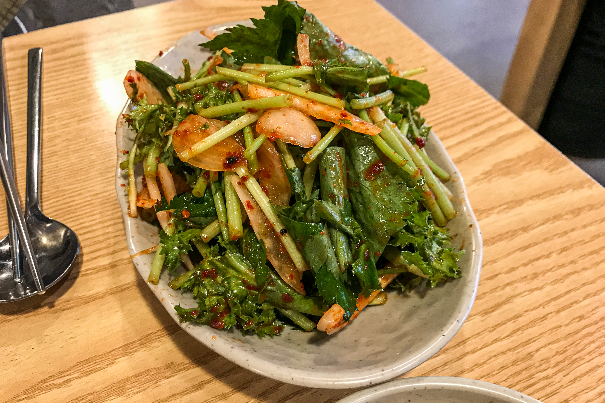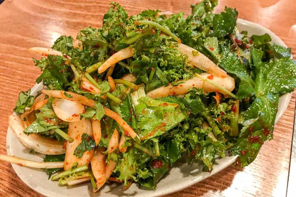 김치 스타일의 샐러드는는 양꼬치와 궁합이 최고