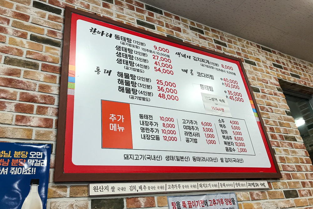 전이 땡기던 날, 세 명이 가서 동태탕 2인분