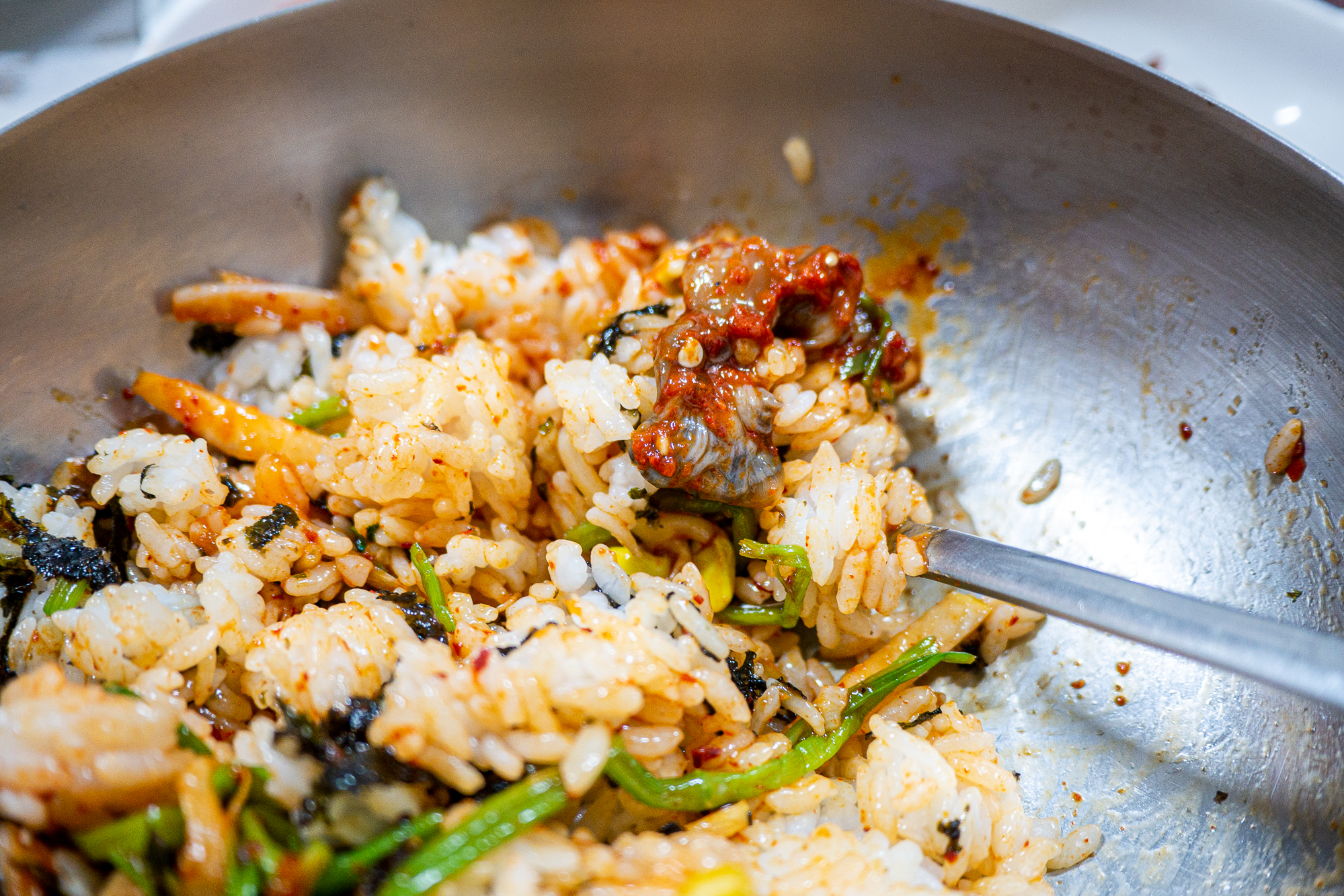 이걸 커다른 양푼에 김가루와 함께 넣은 밥에