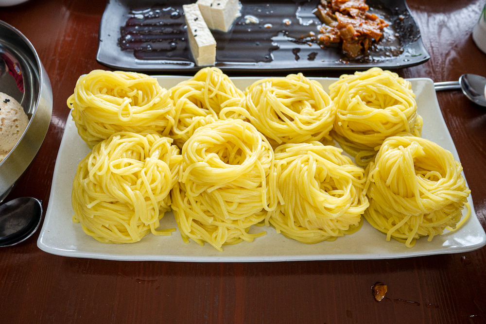 울금을 넣어서 노란색이 나는 국수