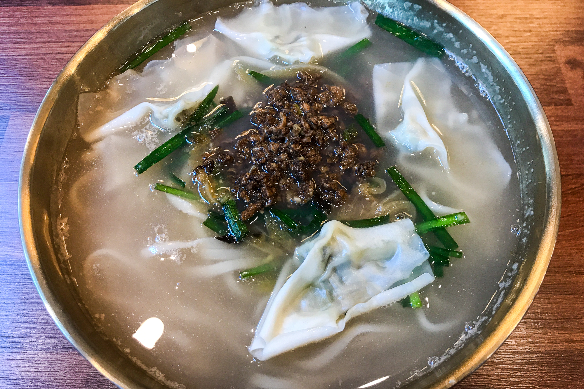 보시다시피 마늘 김치로 명동칼국수 스타일이다