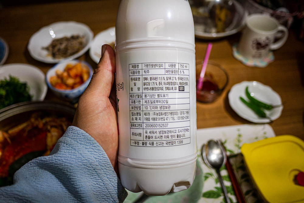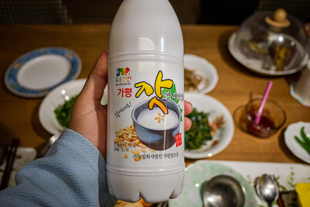가평에서 유명한 잣 막걸리가 있다. 그런데 그게 원래는 녹색병이었던 기억인데 어느 날 마트에 가니 흰색 병에 가평 잣 막걸리가 눈에 띄었다. 궁금한 건 못 참는 법. 바로 픽업해 집으로 가져와 그날 바로 저녁 시간에 함께 막걸리를 마셨다.
