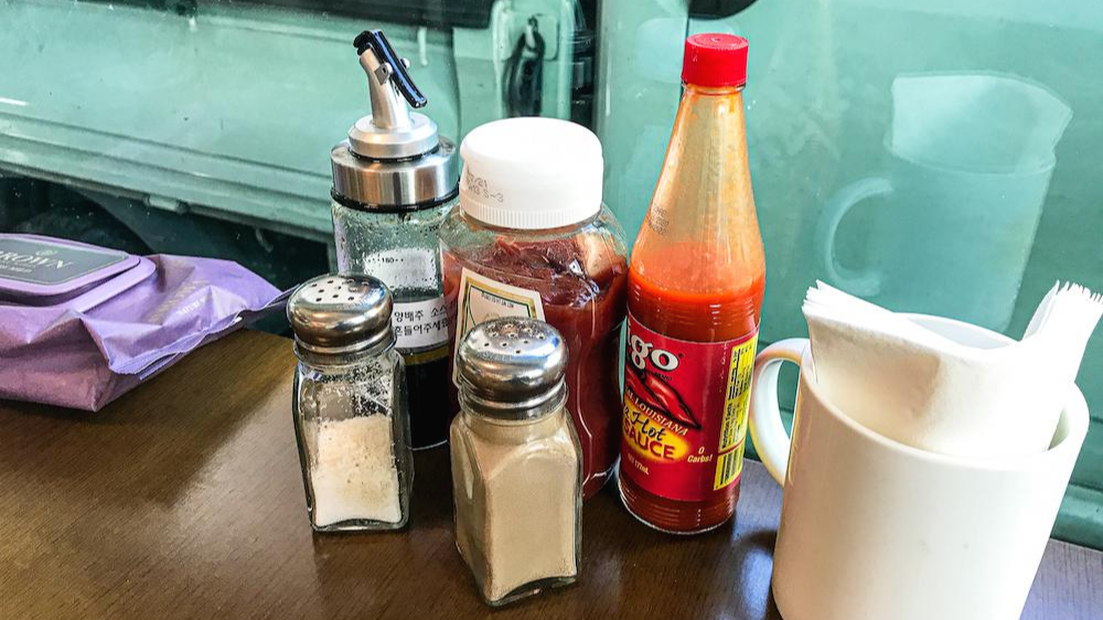 케첩과 핫소스 그리고 샐러드 소스가 있음