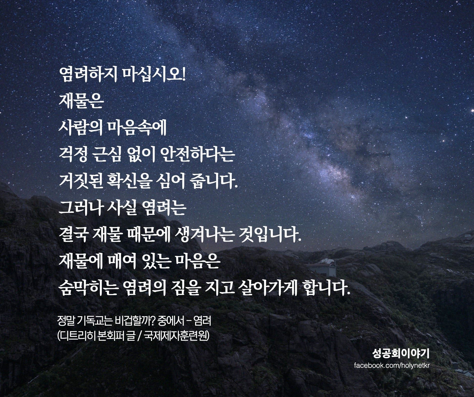오늘 본회퍼 목사님의 말씀은 <염려>이다.