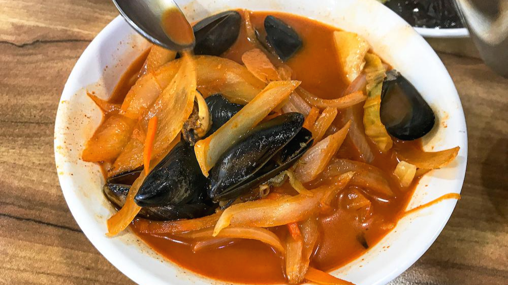 맛이 충분히 나는 양파와 배추, 홍합 등을 잘 써서