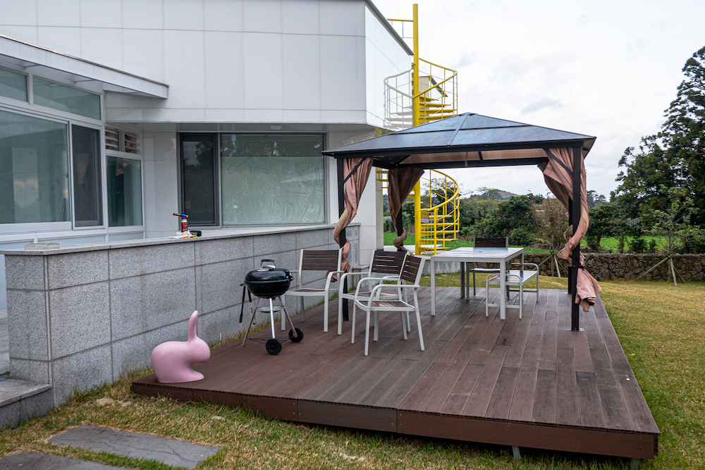 마당에는 아이들이 뛰어놀 수 있는 트랜블린과