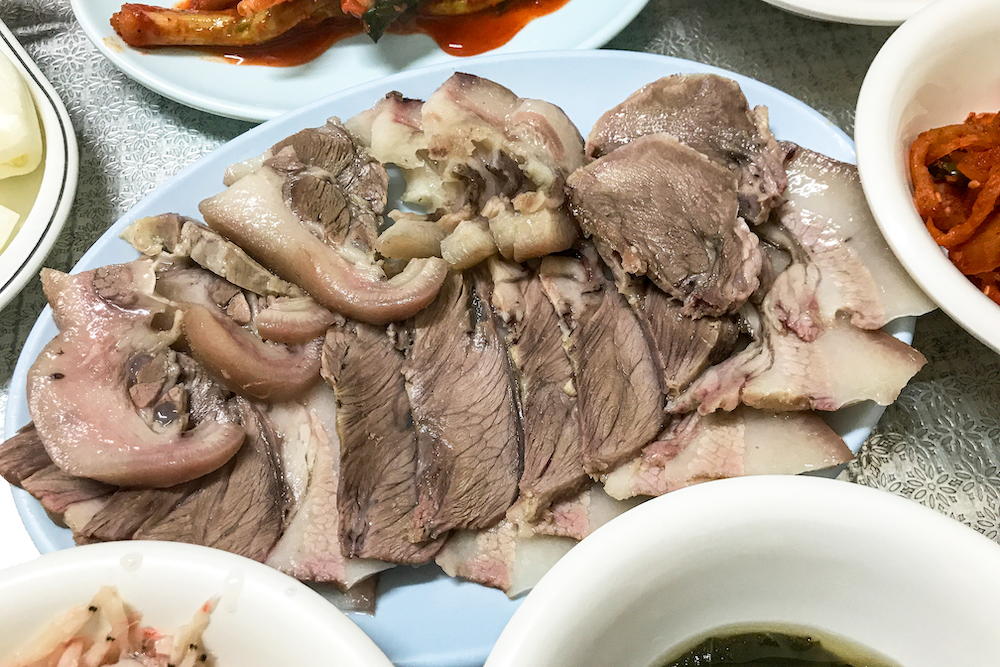 소주 한 잔에 수육 하나 먹고