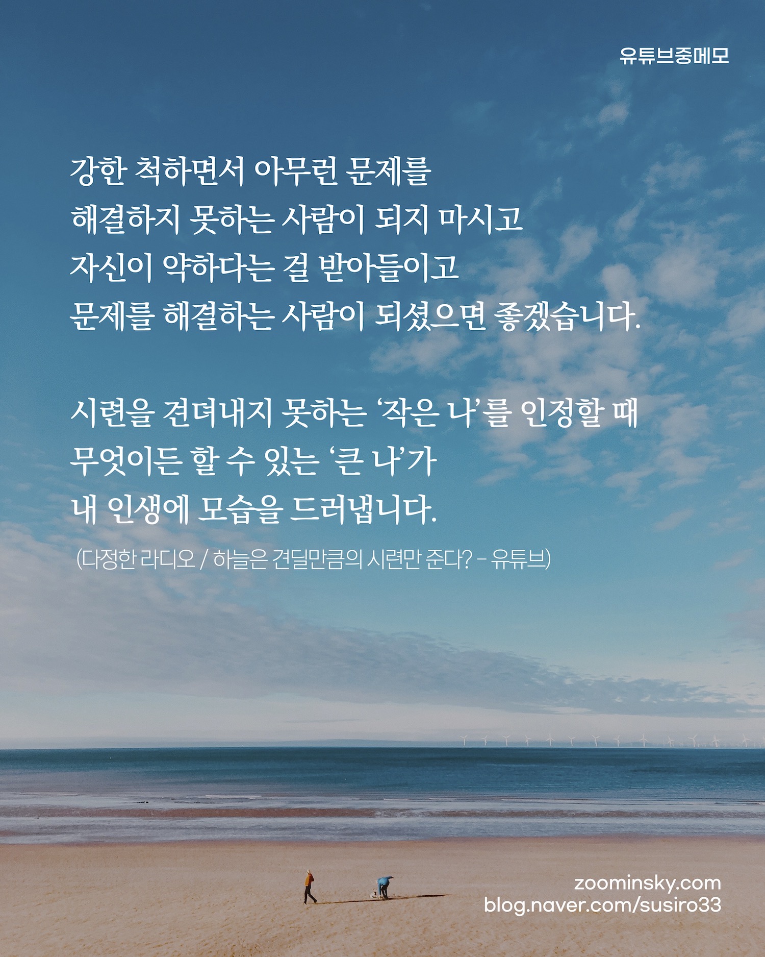 (유튜브 다정한 라디오를 운영하는 마인디님의 말씀 중)