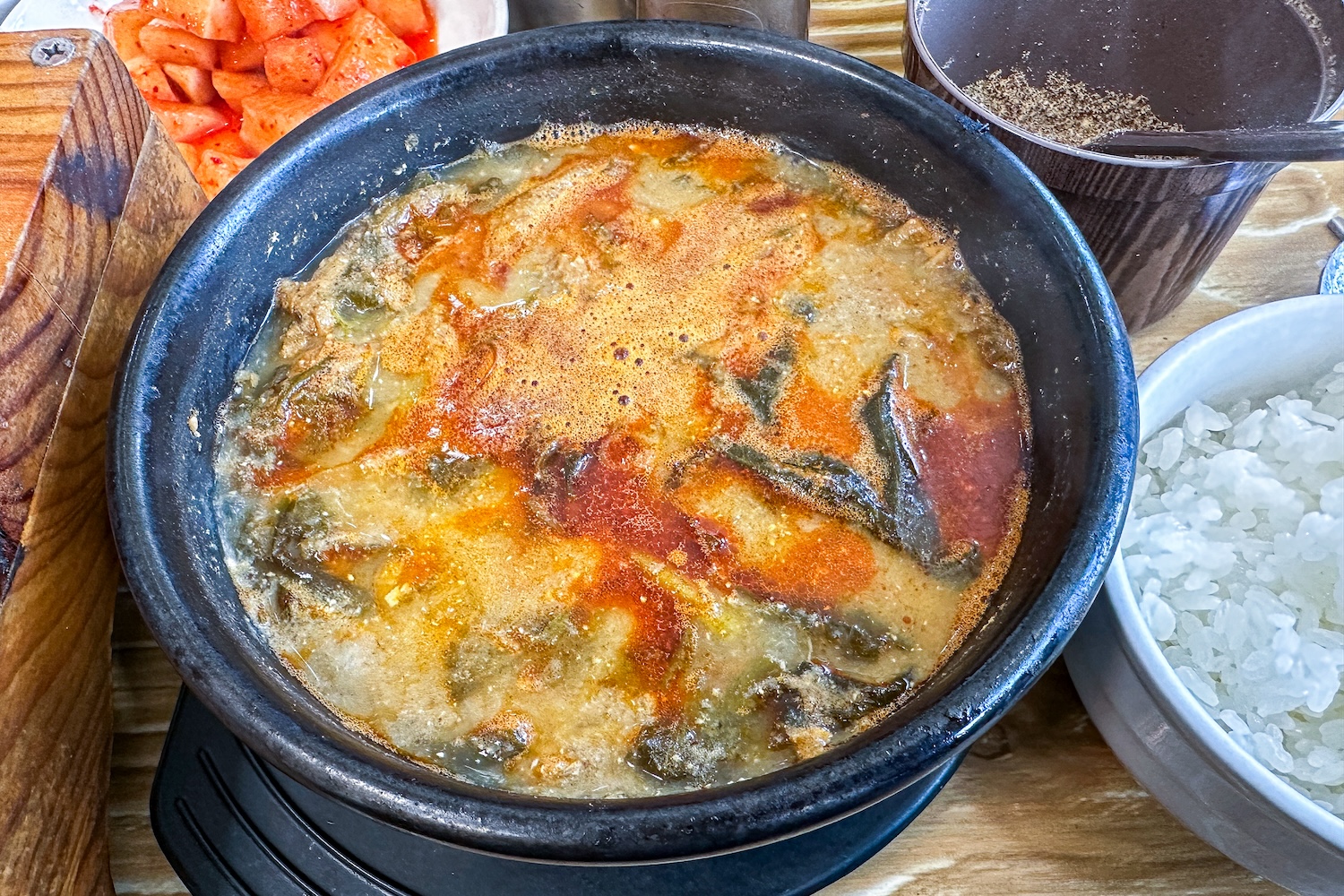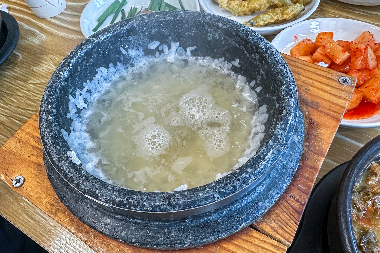 돌솥밥으로 갖지은 밥을 먹을 수 있다는 것