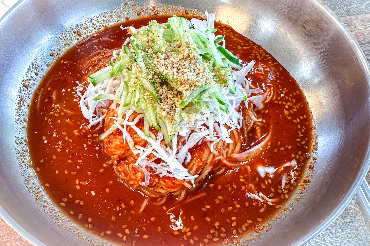 국수는 이때가 더울 때여서 비빔국수를 먹었다. 음.. 조금 아쉬웠다. 비빔국수에 저렇게 물기가 많은 것은 선호하지 않았는데 저렇게 나와서 조금 당황스러웠다. 저걸 마실 수도 없는데 저리 서빙 하는게 조금 이해가 되지는 않았다. 비빔국수는 확실히 육수가 있는 국수와는 차별화되도록 비빔장만으로 맛을 내는게 좋다. 그리고 육수는 따로 서빙을 해주면 훨씬 잘 즐길 수가 있는데 많이 아쉬웠다.