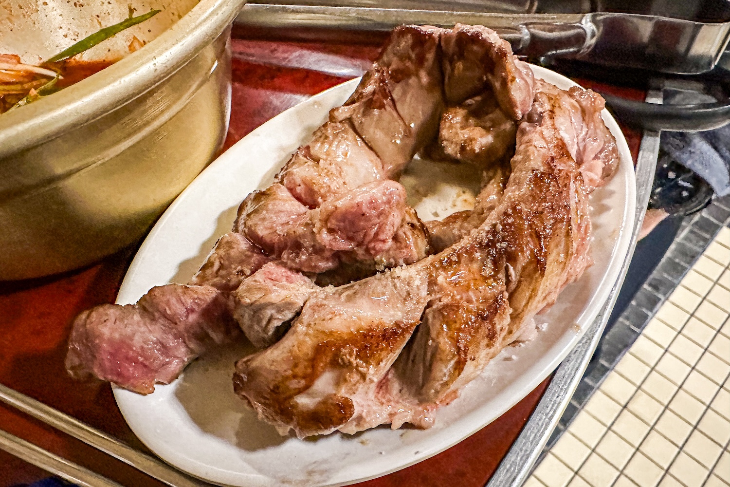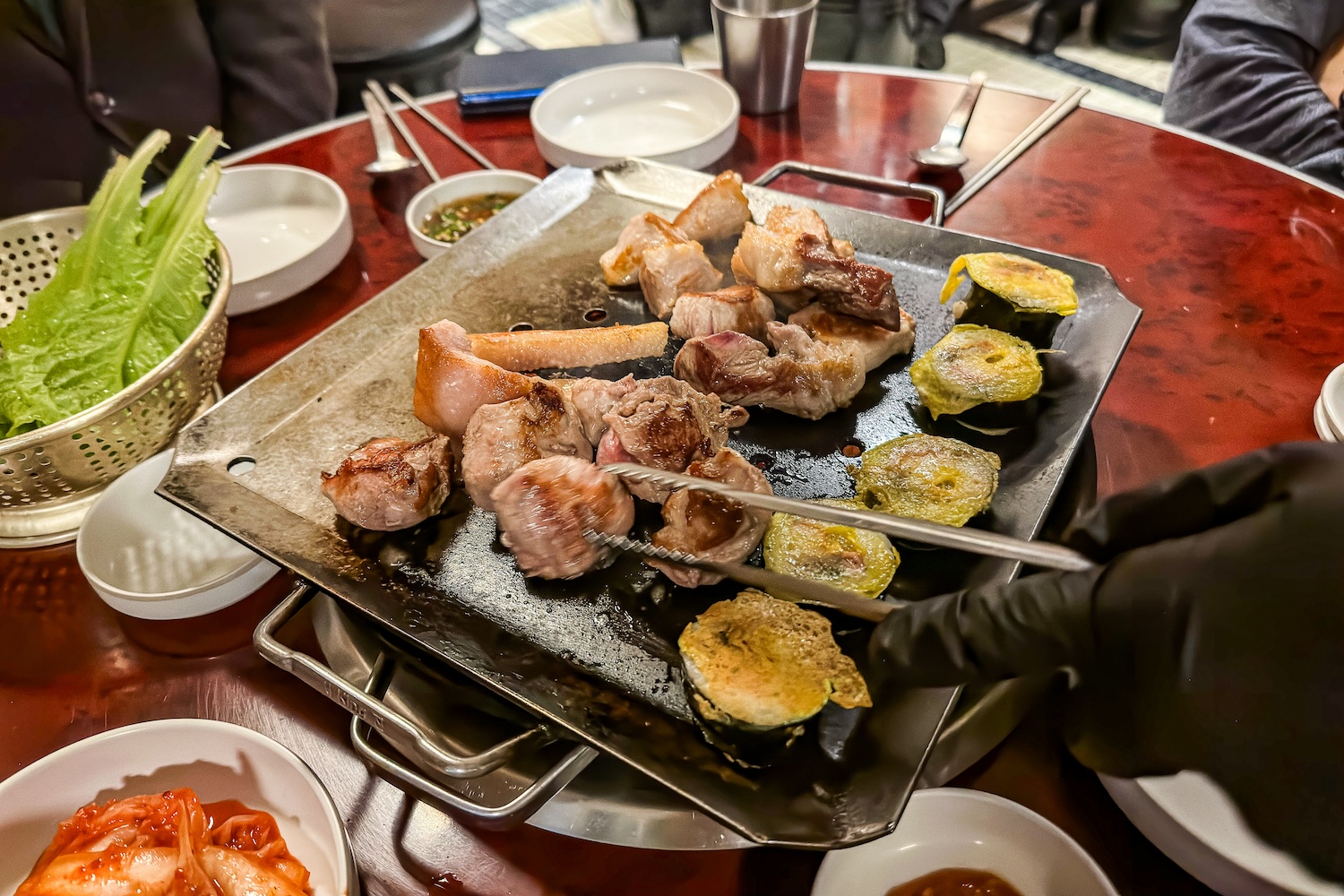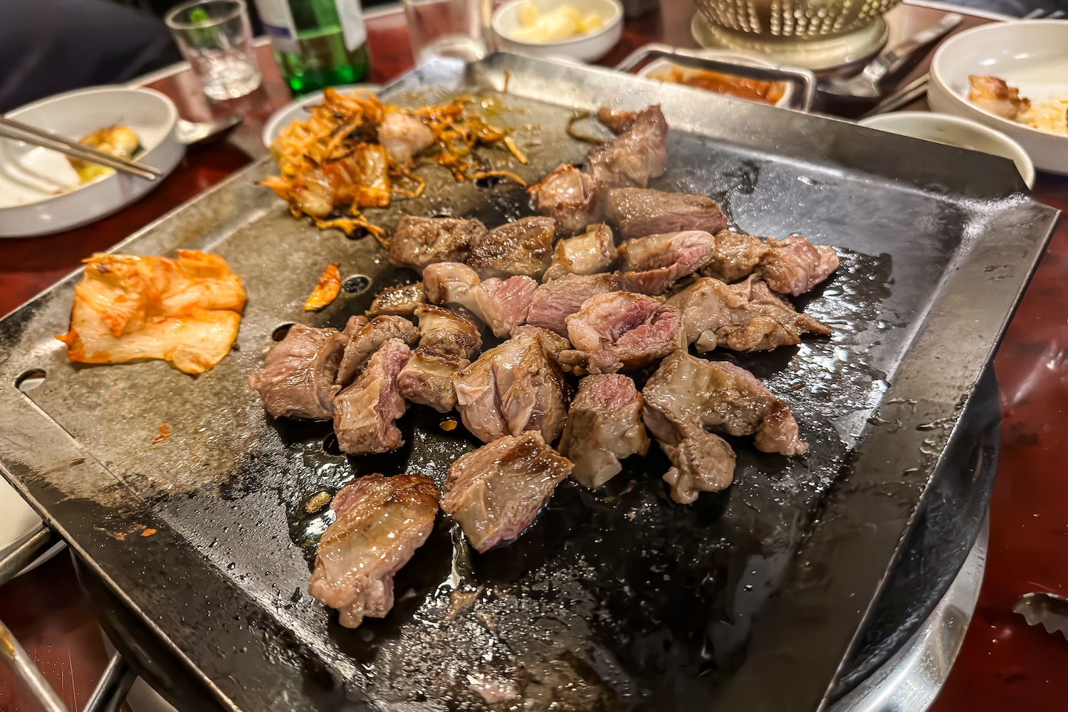 초벌해서 내온 고기는 불판에 올라가면 조금 있다 바로 먹는다.