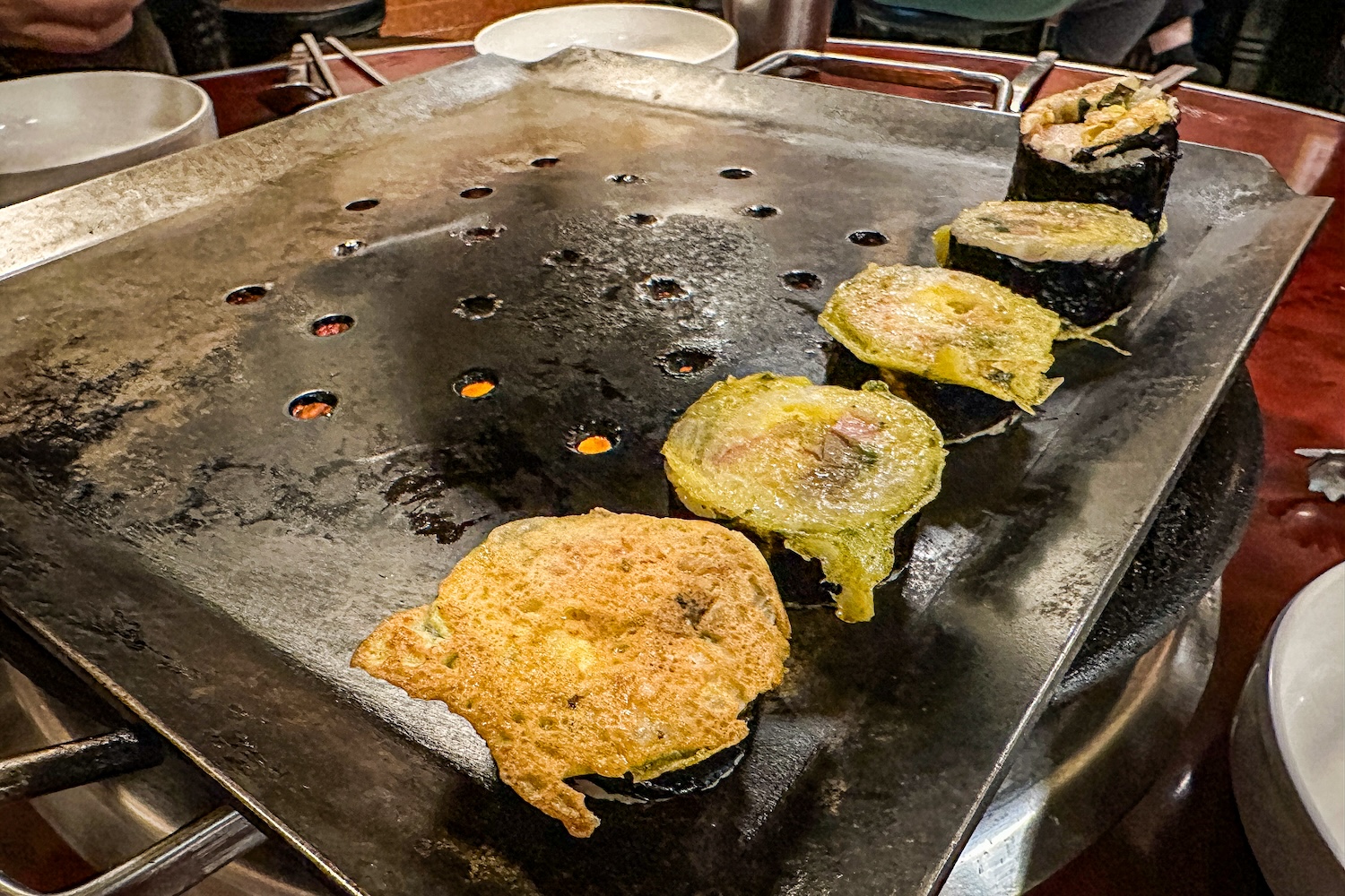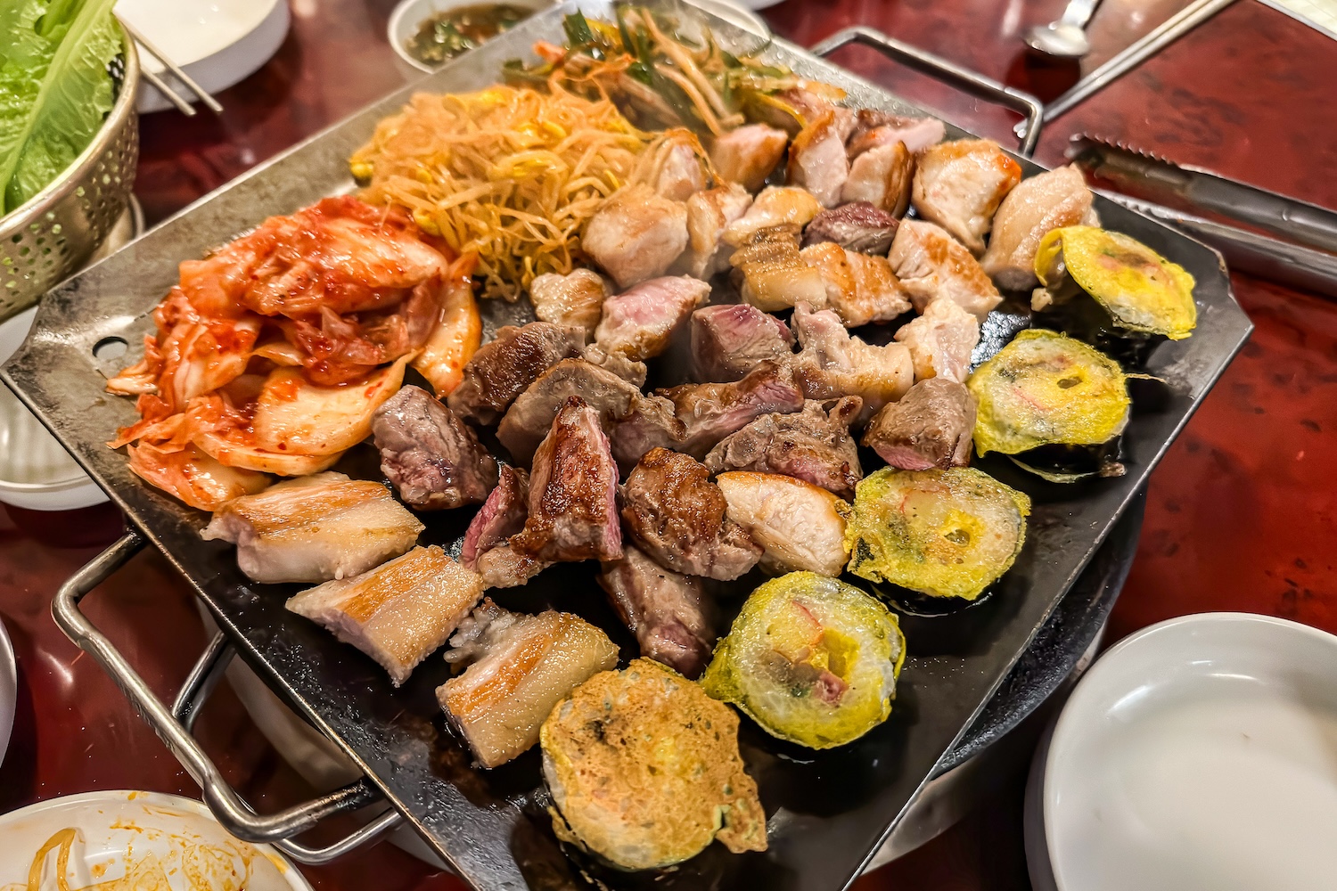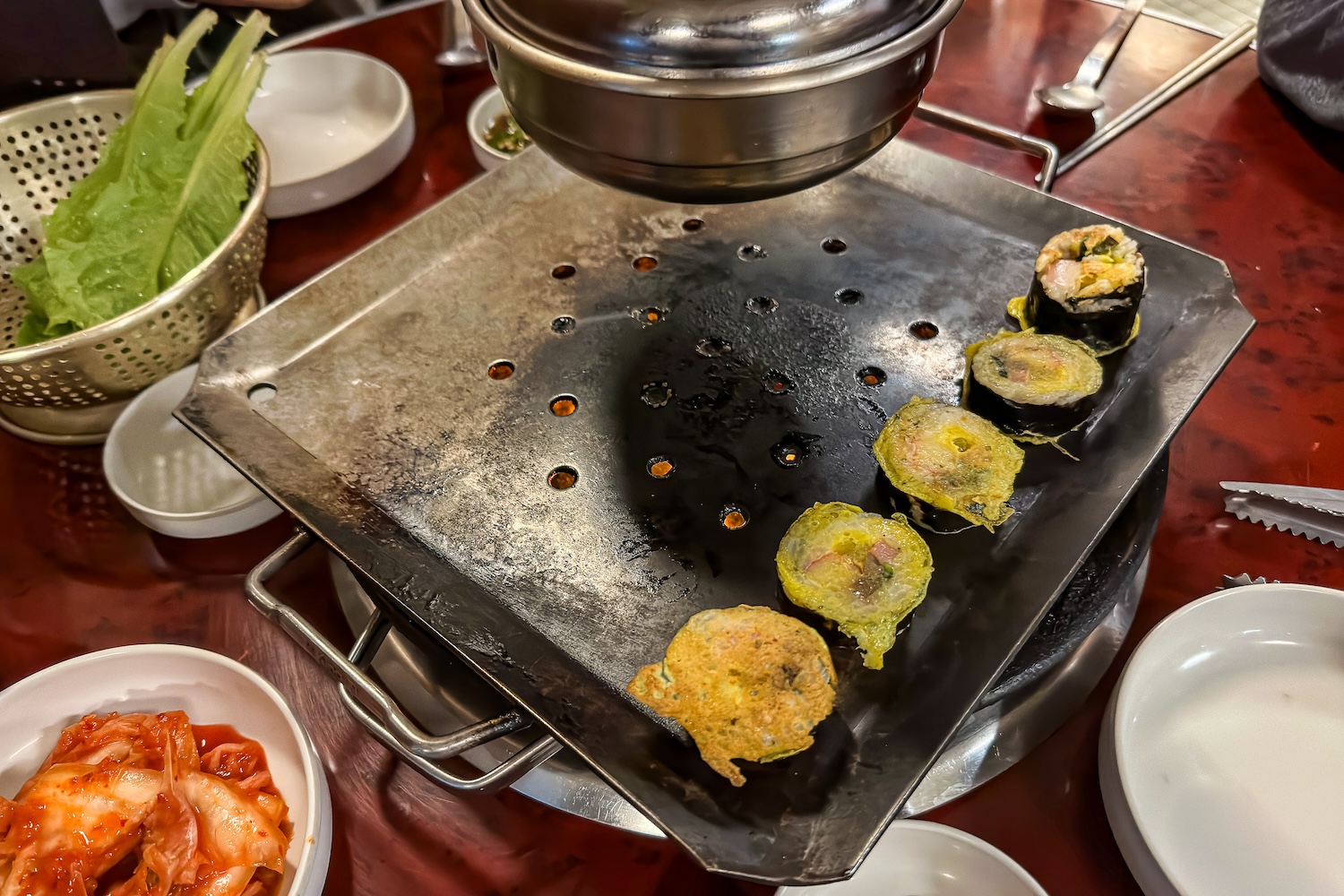 다 불판에 올려 구워 먹는다 그게 좀 특이하다